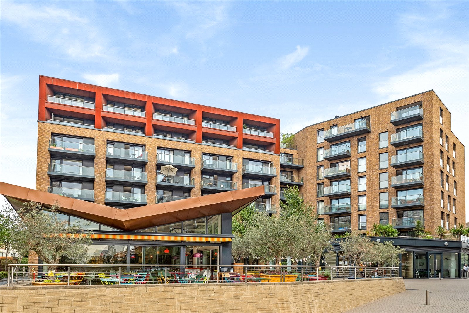 Marine Wharf was developed by Berkley Homes in 2015 and features impressive architecture, beautiful communal areas and many new local amenities. Apart from the gym, concierge and secure cycle storage, you will find the renowned Pear Tree Kitchen, the cool Wolfy’s bar/cafe, an Italian deli, a barber, yoga places and beauty salons. There is also both a Co-Op and Tesco Express.