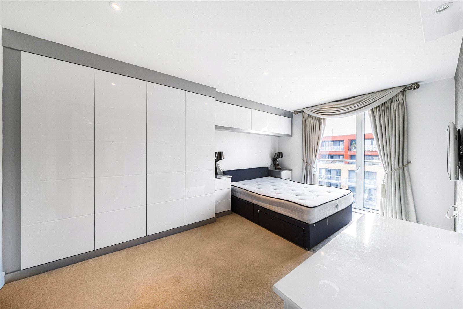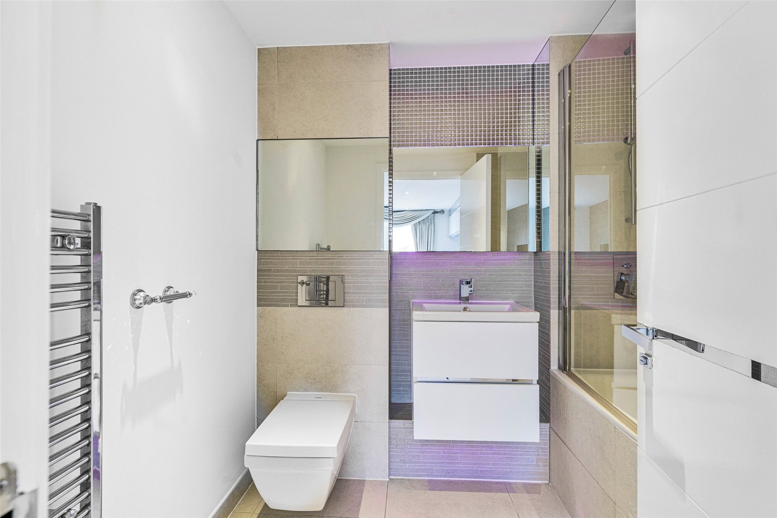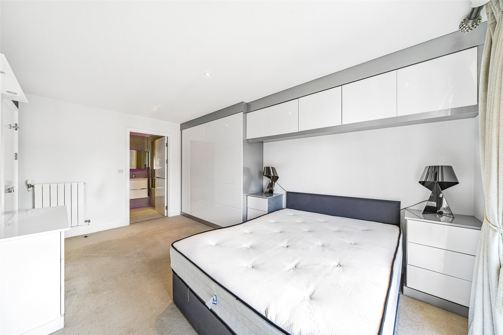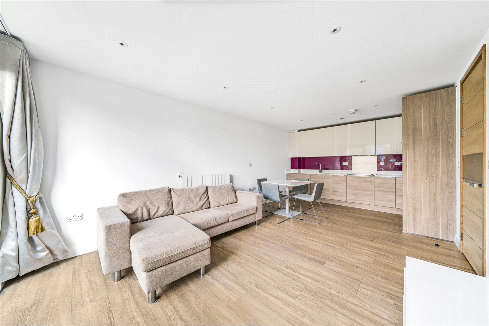 This sixth floor (top) home boasts integrated appliances (including a dishwasher and microwave), a well-insulated interior that requires little heating, availability of fast fibre broadband, elegant made-to-measure curtains, wine fridge, secure cycle store and access to the residents’ garden accessed from the first floor.