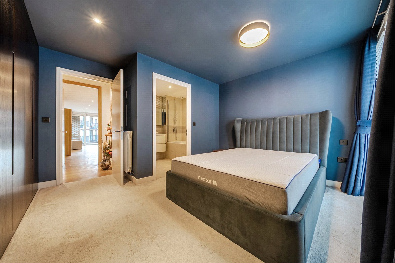 Every detail has been carefully considered in this well-proportioned 981sqft / 91sqm home and it comprises three double bedrooms, each with a Juliet balcony. The open-plan living space offers plenty of room to cook, dine and relax. The high-spec kitchen boasts contrasting units, dishwasher and full-sized fridge freezer. The primary bedroom features wall-to-wall wardrobes as well as an ensuite bathroom.