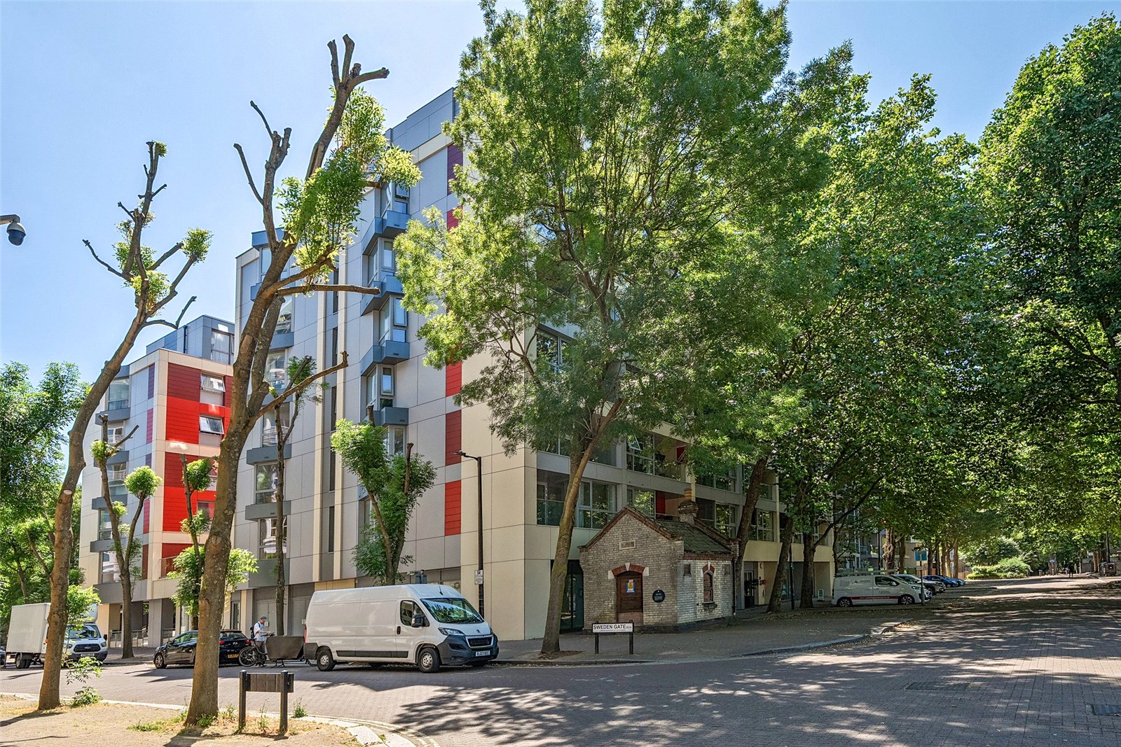 A modern 807sqft/75sqm apartment, situated on quiet residential street with views of Greenland Dock. Within easy reach of the stations, it boasts floor-to-ceiling glazing, a balcony, an open-plan reception, two bathrooms, large hallway storage cupboards, an onsite concierge and a communal roof top terrace.