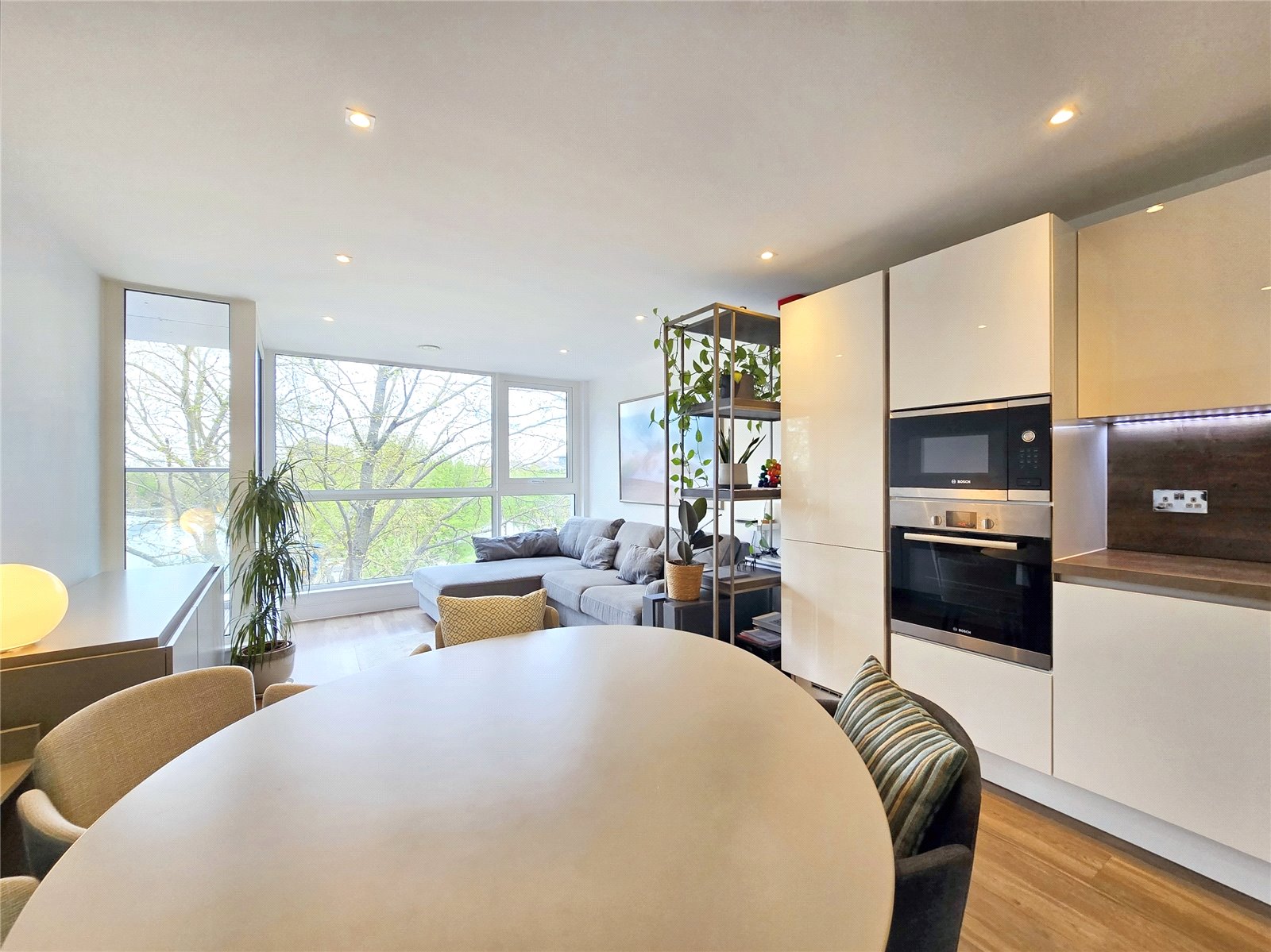 A larger than average 574sqft modern apartment with a large balcony. It has a sociable open-plan living area, stylish kitchen with integrated appliances, luxurious bathroom, spacious bedroom with fitted wardrobes and use of the onsite concierge and shared rooftop terrace. Furnished, available now.