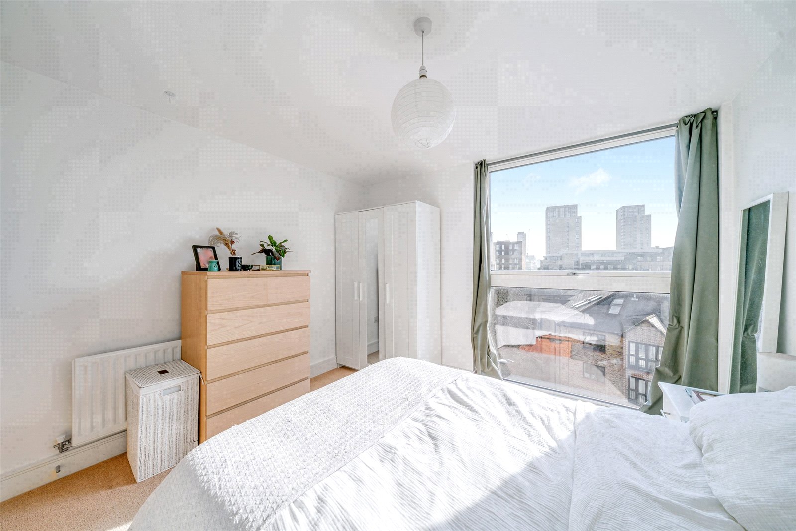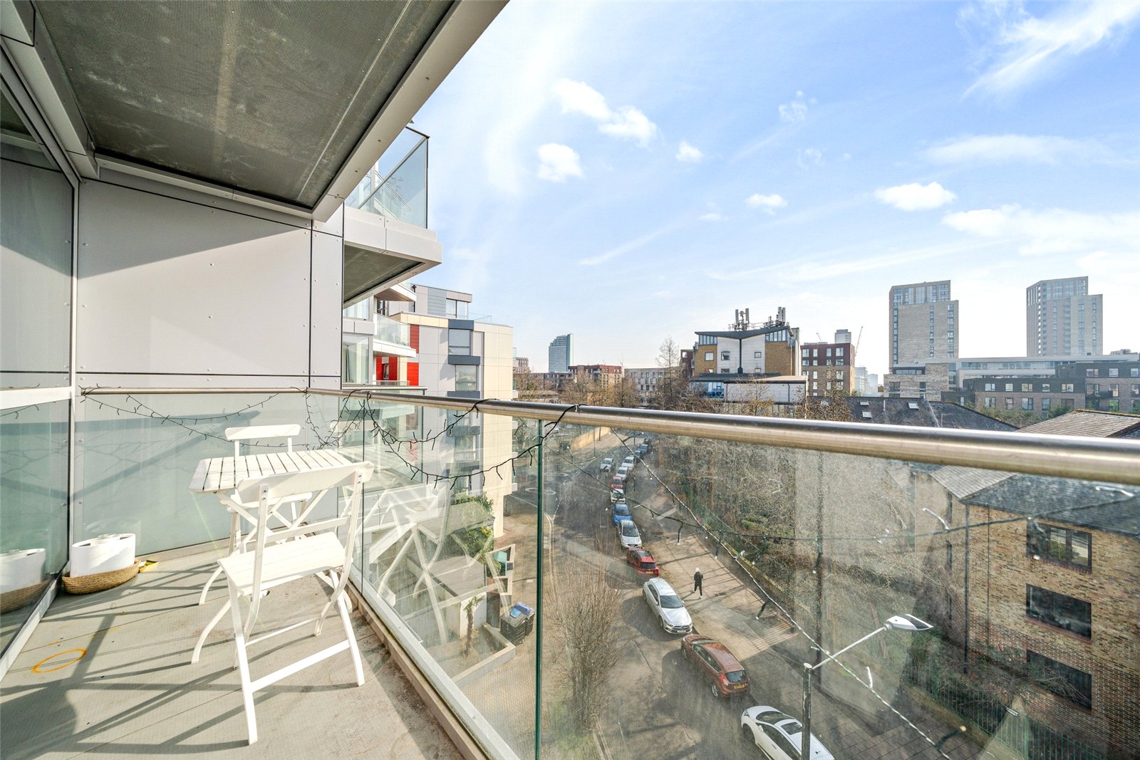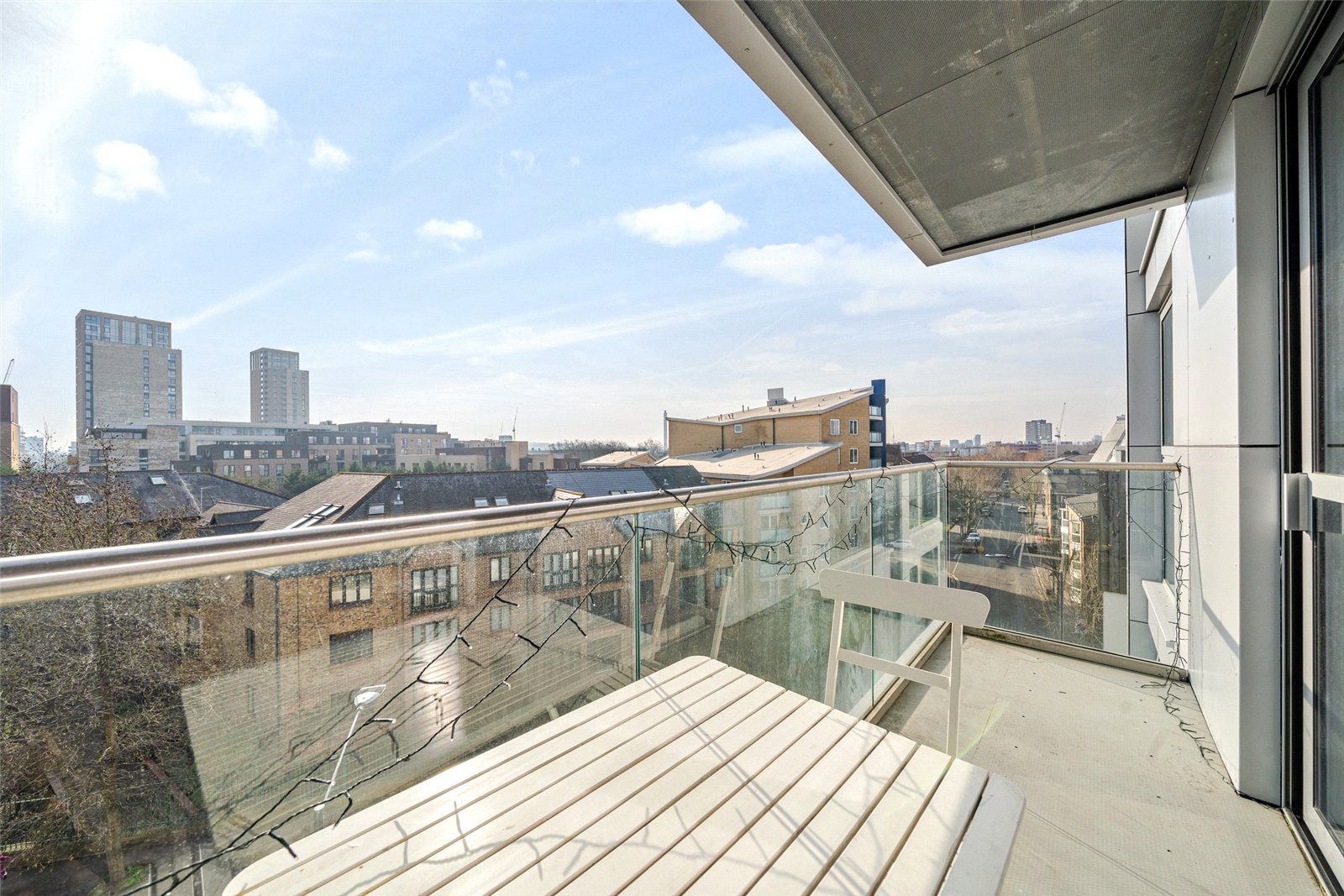 A modern 556sqft fourth-floor apartment, with a south-facing aspect and a large balcony. It has a luxurious bathroom, a sociable living area with open-plan kitchen, onsite concierge and is easily accessible to the stations and local amenities.