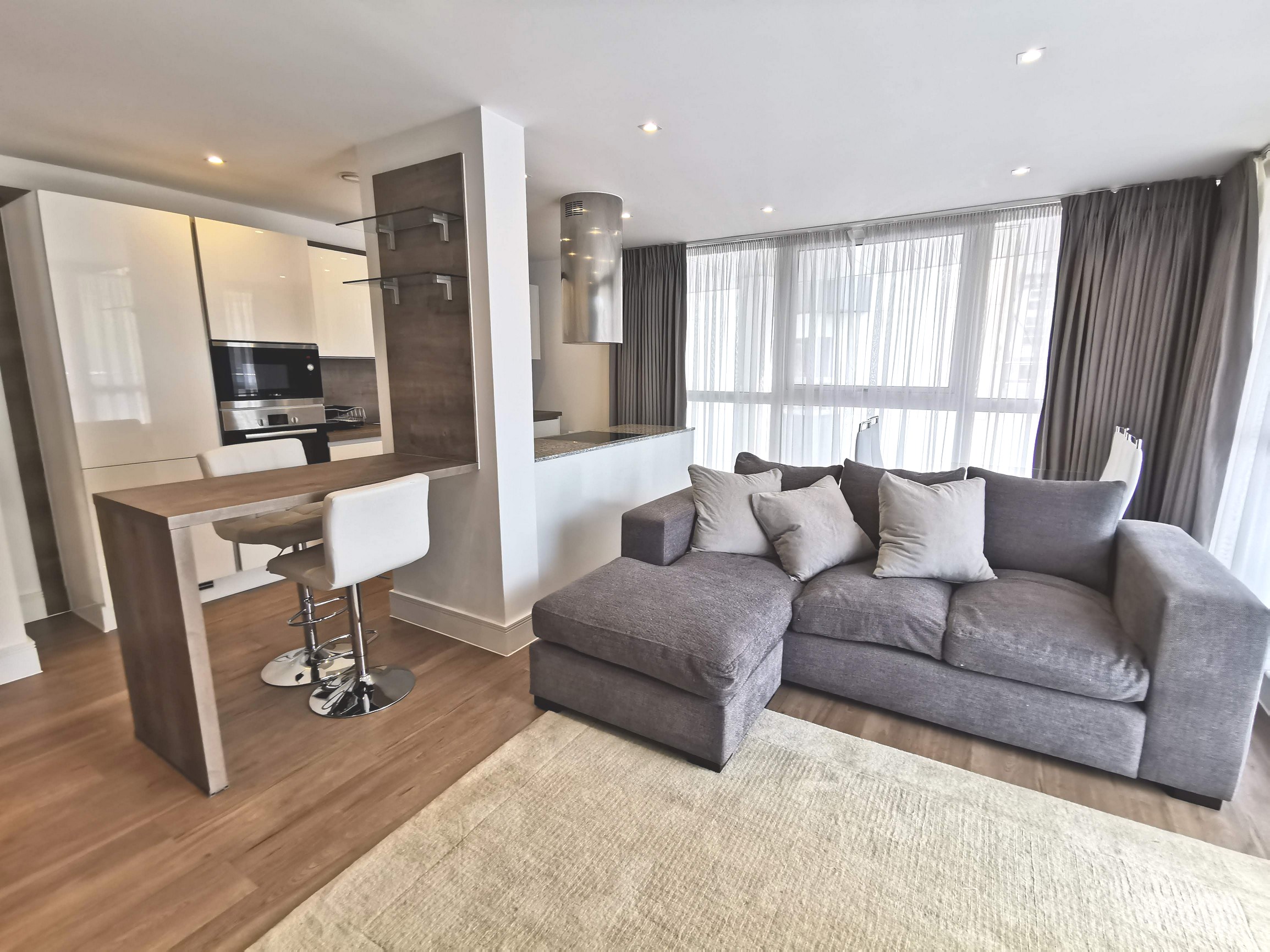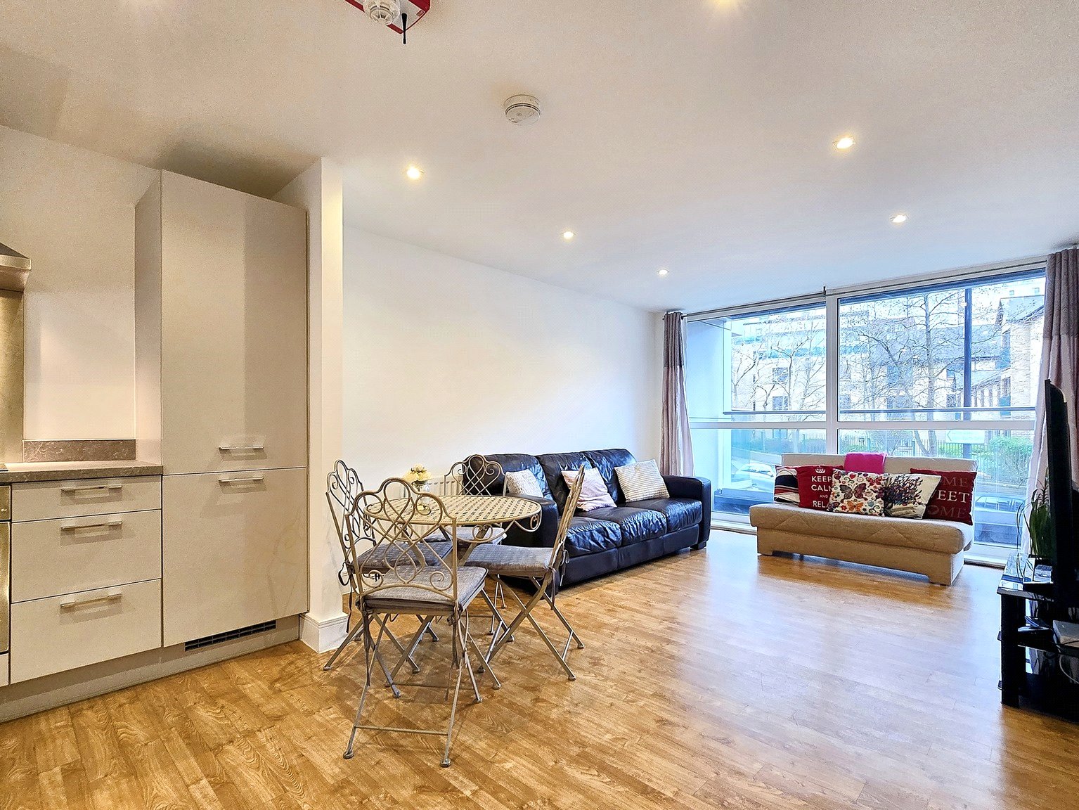 A modern apartment with a large dock-facing balcony. Situated on the second floor, it has a luxurious bathroom, a sociable living area with open-plan kitchen, a storage/utility room, onsite concierge and is easily accessible to stations and local amenities.