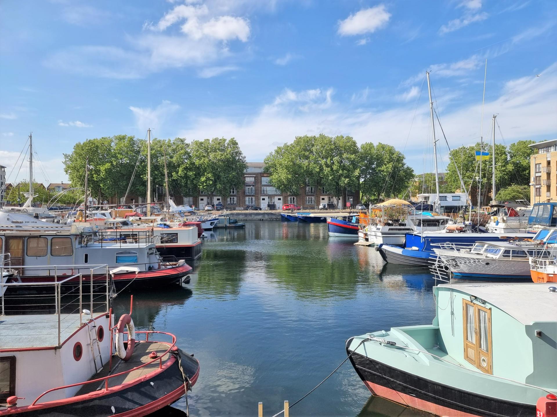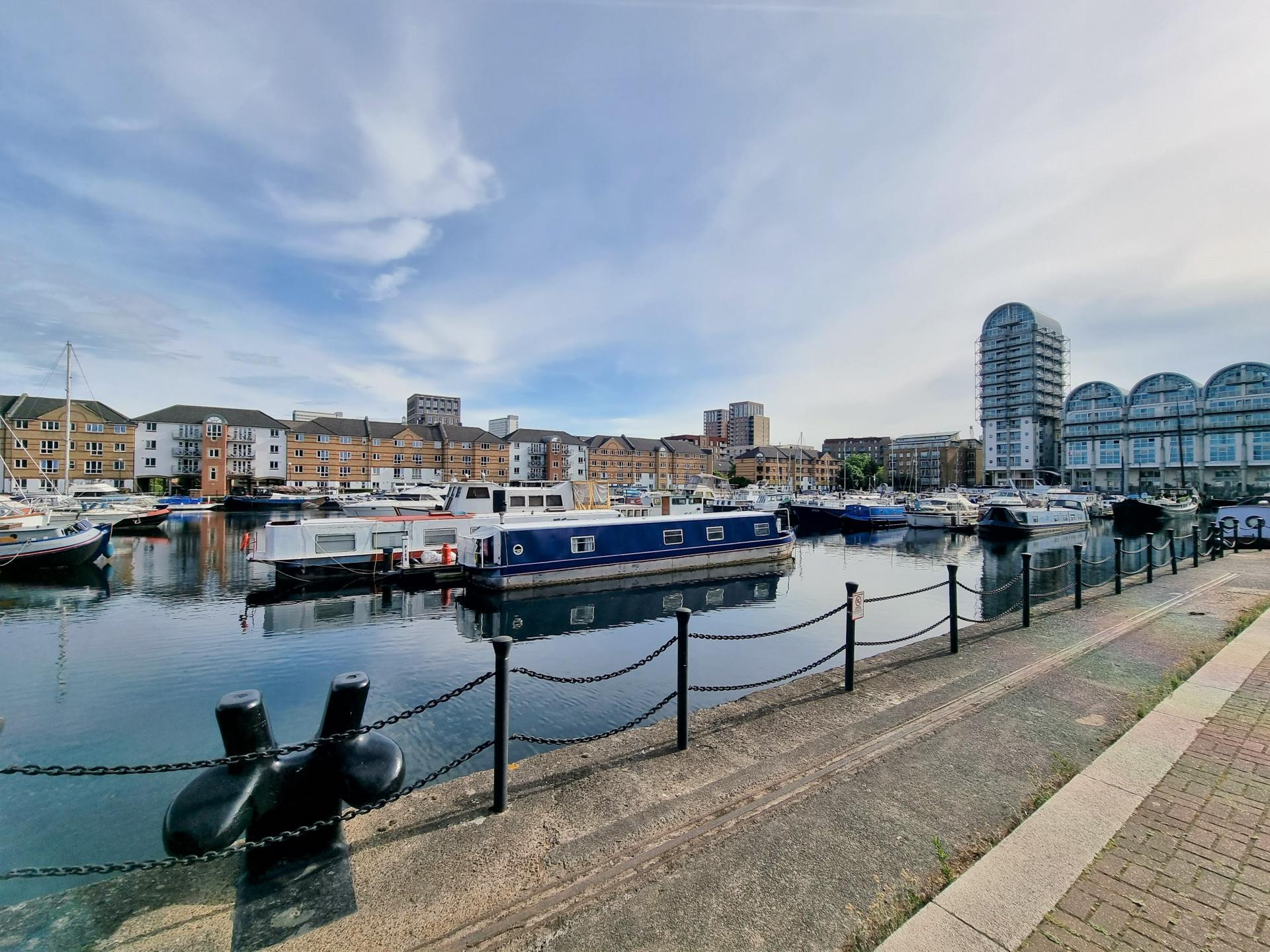 A bright and well-proportioned 811sqft apartment directly overlooking South Dock Marina. It has a south-facing aspect, two modern bathrooms, huge hallway, relaxing reception, a separate kitchen, secure parking, a gated communal garden and new furniture.