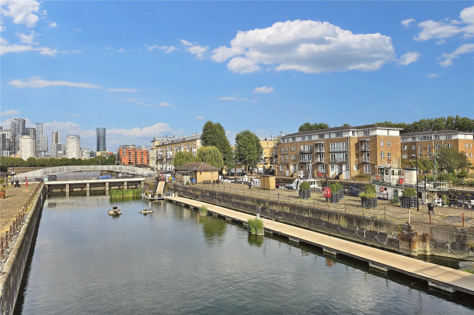 A bright and well-proportioned apartment by South Dock Marina and only metres from The River Thames. It has a separate kitchen, fitted wardrobes, Juliet balconies off the bedroom and reception with views of the marina, a gated communal garden and secure parking.