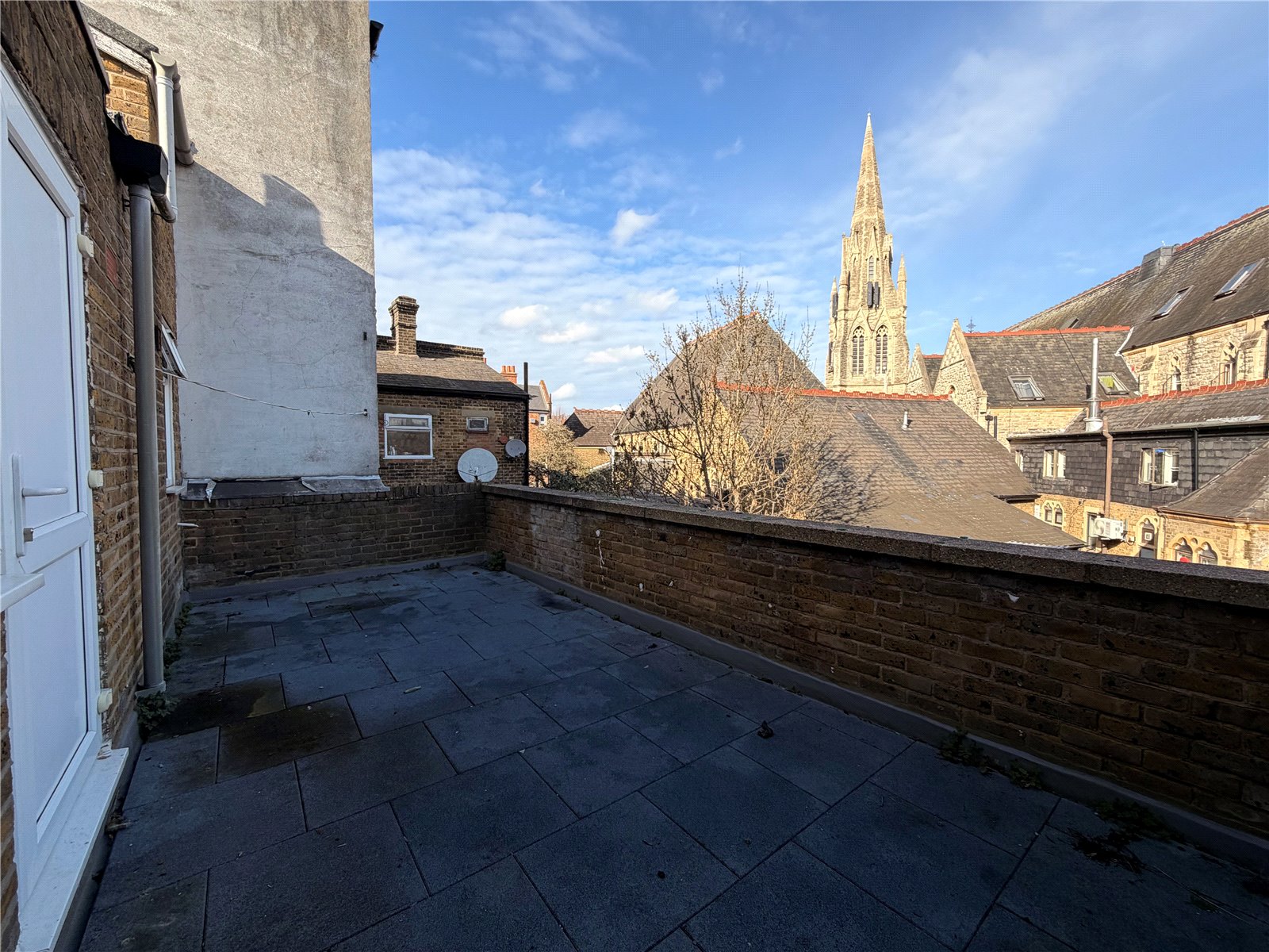 A standout feature of the property is the private roof terrace, offering an excellent outdoor space ideal for relaxing or entertaining, with attractive rooftop views including a nearby church spire.