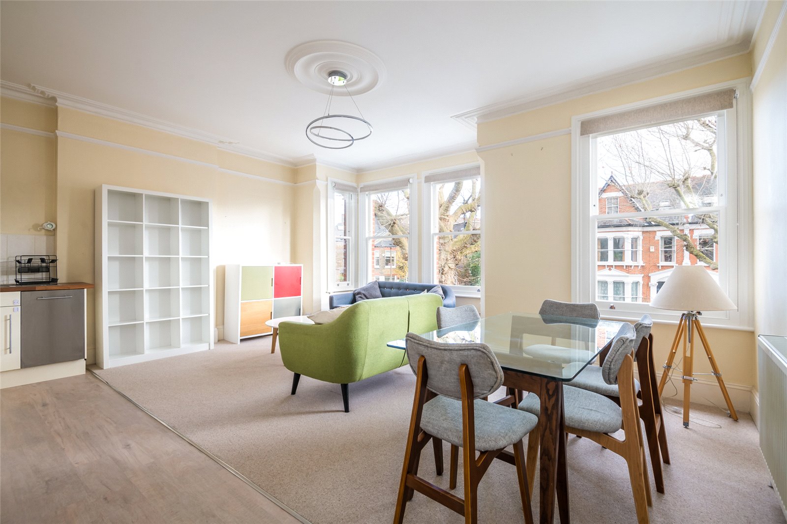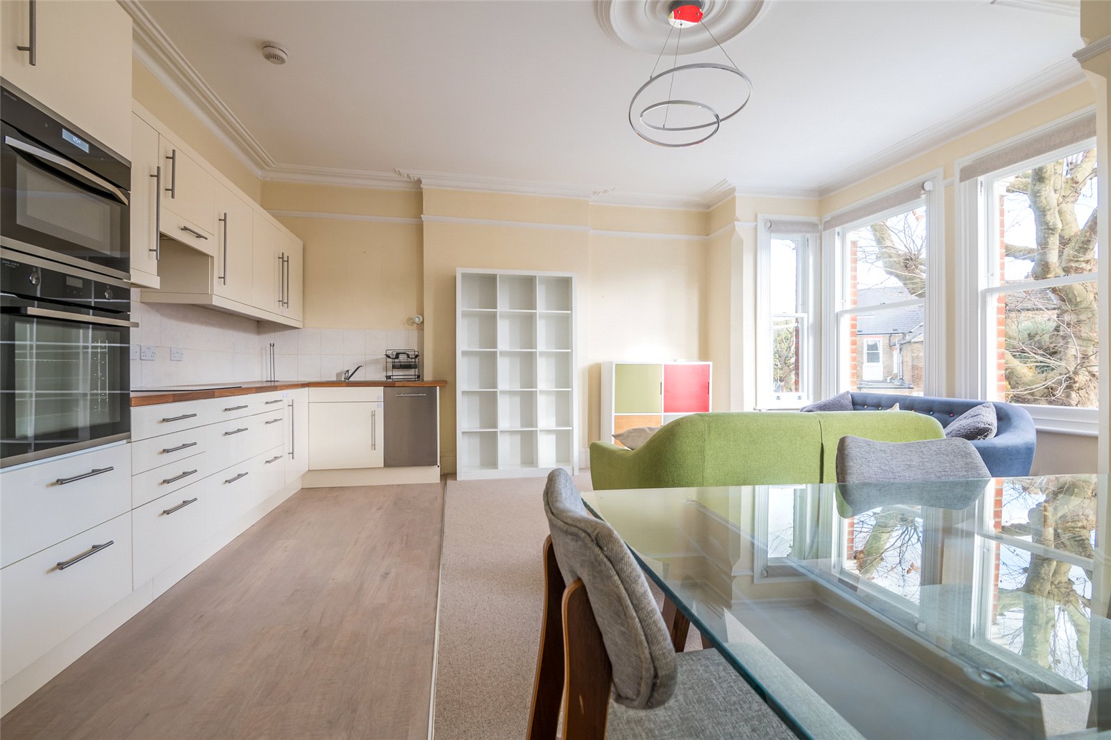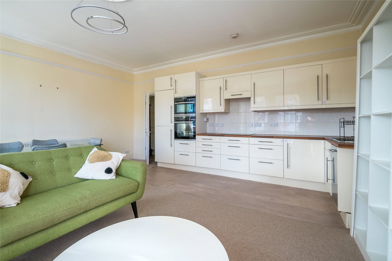 - Large and bright open plan living room kitchen