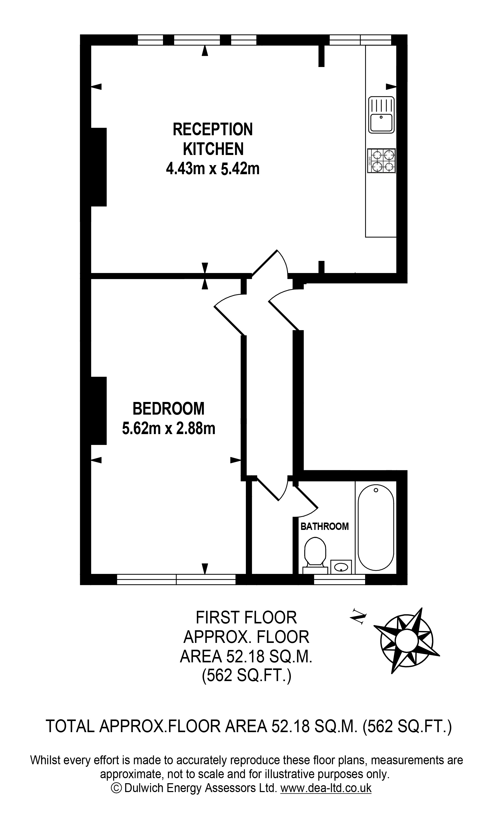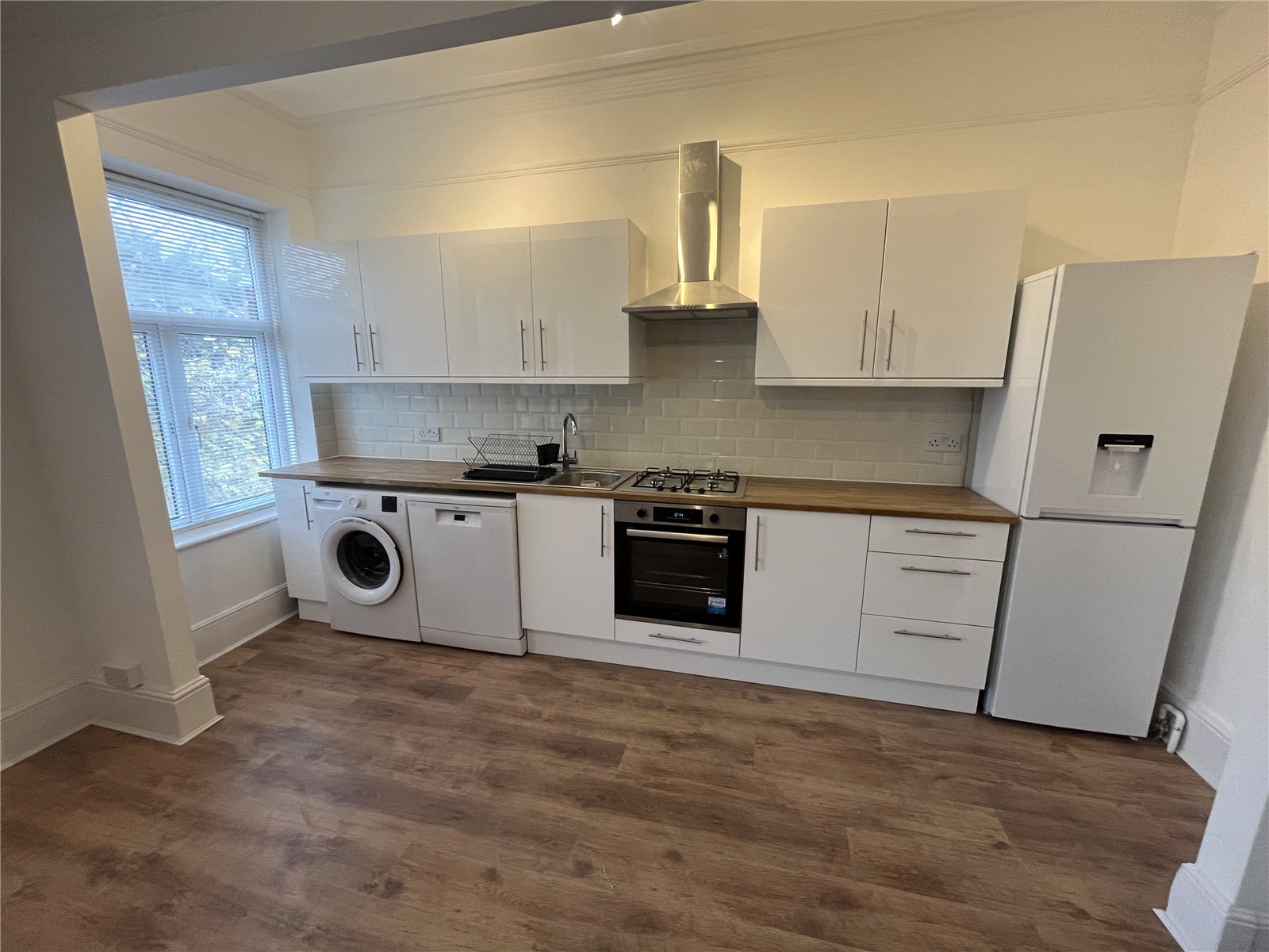 Newly refurbished one bedroom first floor flat. Bright living space with large bedroom to the rear of the building. Availabe now.