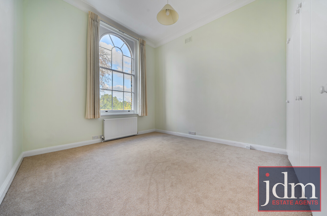 Raised ground floor reception room with high ceilings and tremendous bay window overlooking beautiful communal gardens, modern kitchen with all appliances. Large bedroom with floor to ceiling fitted wardrobes and newly installed shower room.