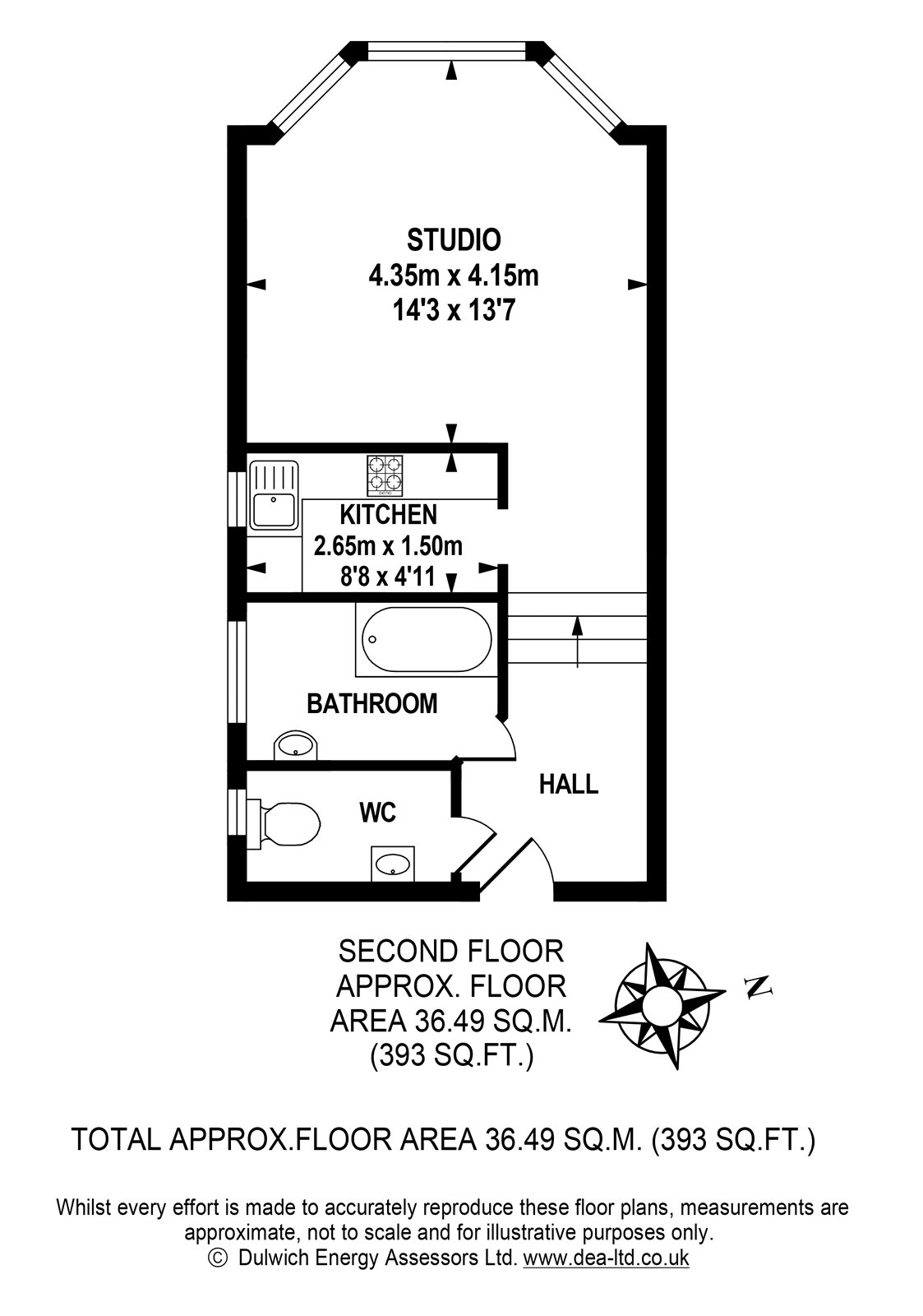 Newly reburbished first floor spacious studio apartment with plenty of storage.