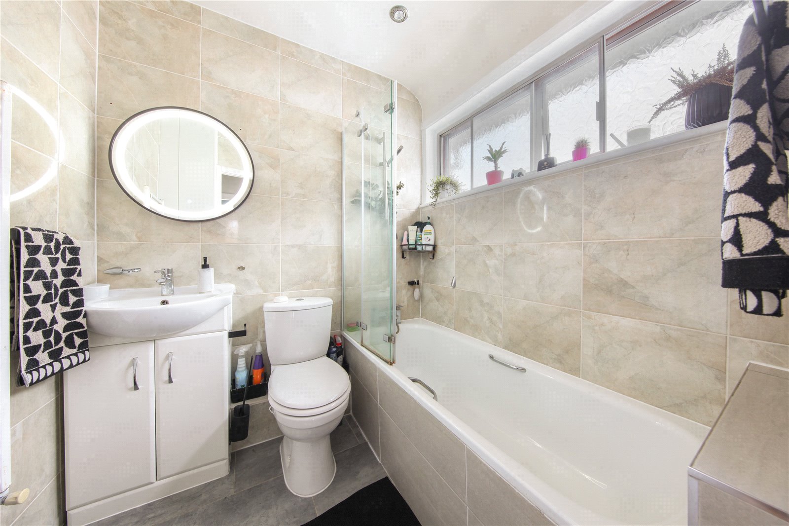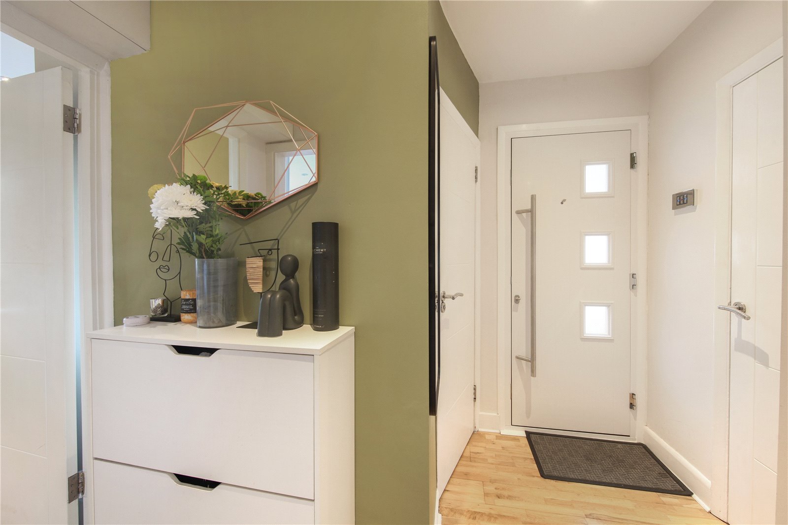 Both bedrooms are well-proportioned doubles filled with natural light. The main bedroom benefits from fitted wardrobes, while the second bedroom is ideal as a guest room, home office or dressing room. The stylish family bathroom features a full-size bath with overhead shower and contemporary fittings.