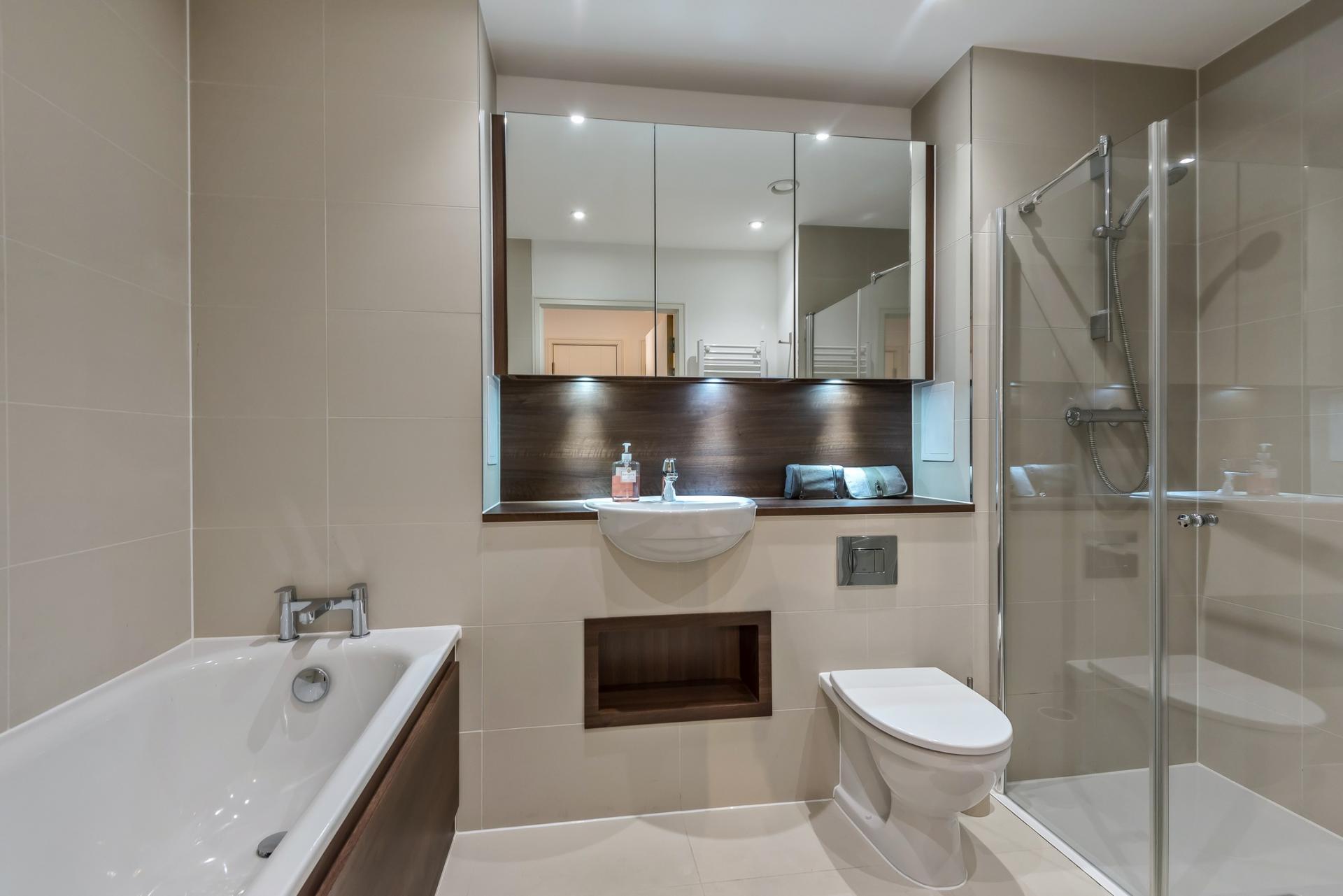 A 591sqft modern apartment within the vibrant Greenland Place. It boasts an open-plan living area, a balcony, heated Amtico flooring throughout, a luxurious bathroom with separate shower, ample storage and fitted wardrobes. Includes use of the 24-hour development gym and concierge service.