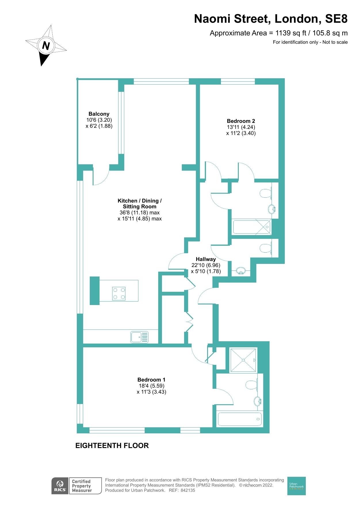 - 1,139 sqft / 105.8 sqm