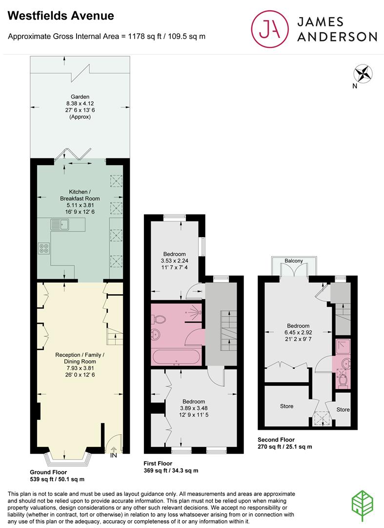 On the first floor there are two generous double bedrooms and a modern family bathroom. The top floor features a large principal bedroom with an ensuite shower room and a Juliette balcony. The property is presented in excellent condition throughout, with neutral décor and fitted carpets.