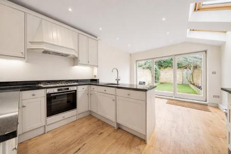 This attractive and well-maintained three-bedroom home is situated in the highly desirable Little Chelsea area. The ground floor offers a light and spacious double reception room with oak flooring and a gas coal-effect fireplace, leading through to a stylish kitchen and dining space with bi-fold doors opening onto a south-facing garden, perfect for indoor-outdoor living.