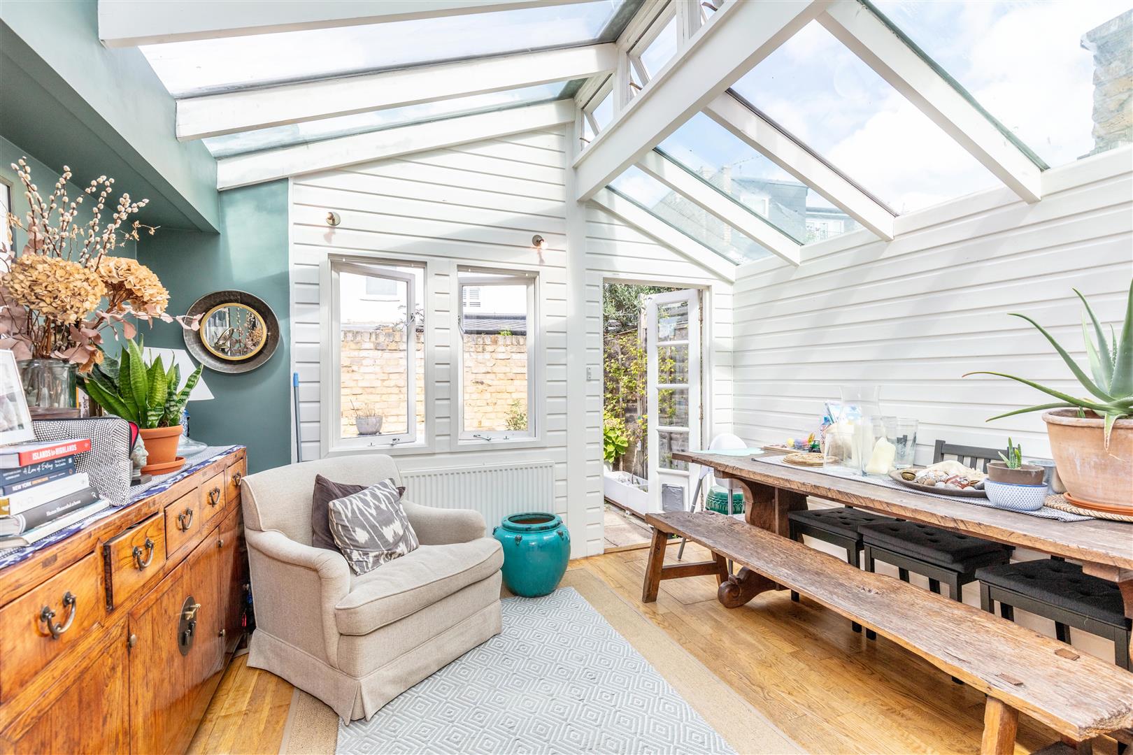 Nestled in the sought-after enclave of Little Chelsea, this well-appointed home boasts an abundance of character and natural light throughout. The spacious reception room features wooden floors that seamlessly lead to a well-equipped kitchen and a conservatory, both of which open onto a charming patio garden. French doors from the reception room provide access to a second patio, enhancing the outdoor living space.