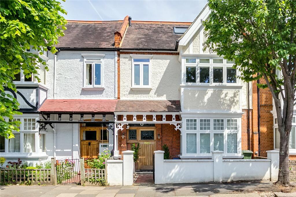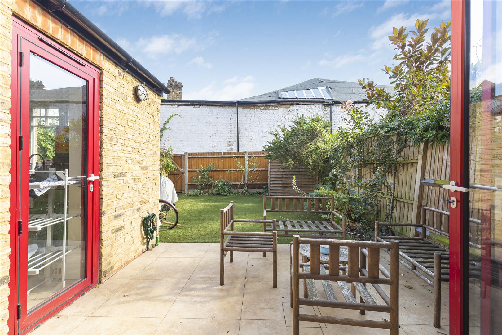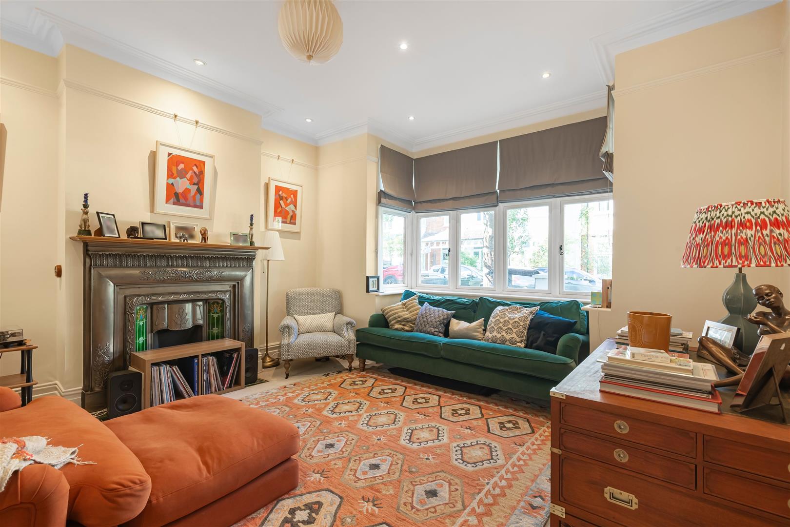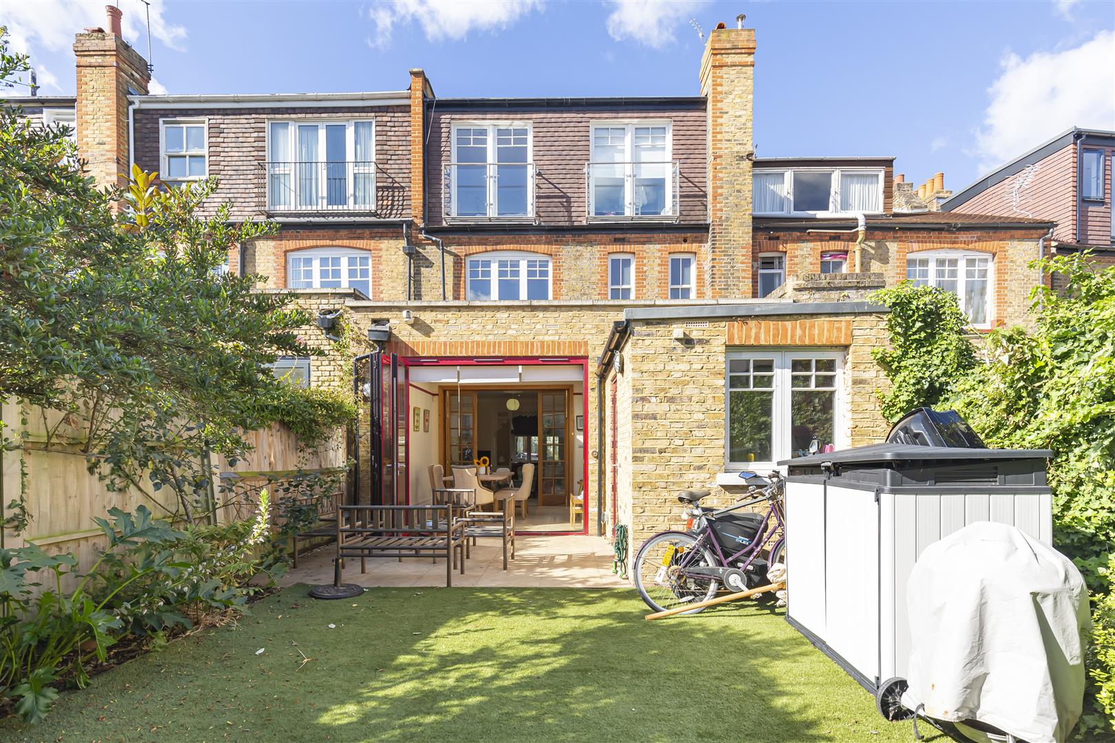 The spacious entrance hallway leads through to a bright double reception room with high ceilings, period detailing and fireplaces. Full height double doors lead on to an expansive open-plan bespoke kitchen and dining room with bi-fold doors to landscaped garden. There is a separate utility room with butler sink and guest WC. Over the top two floors are four double bedrooms, two of which benefit from excellent built-in wardrobes and modern en suite bathrooms. The master comprises a walk-in wardrobe and wet room, whilst the other suite benefits from a luxurious en suite bathroom with original roll top bath and walk-in shower. There is a further family bathroom and additional storage room.