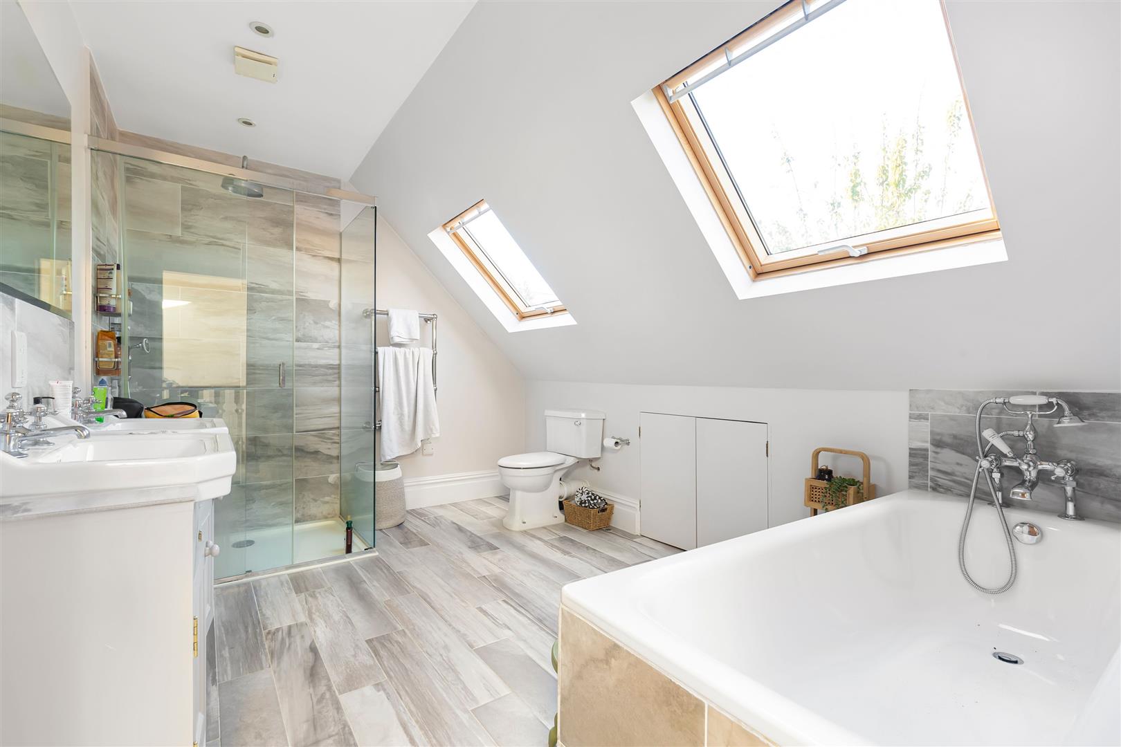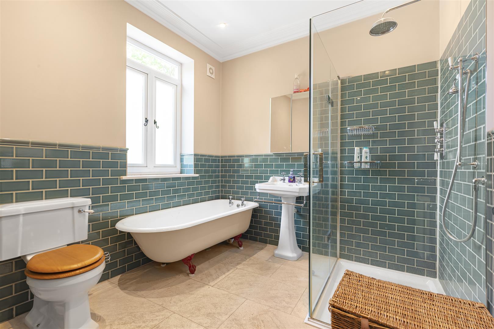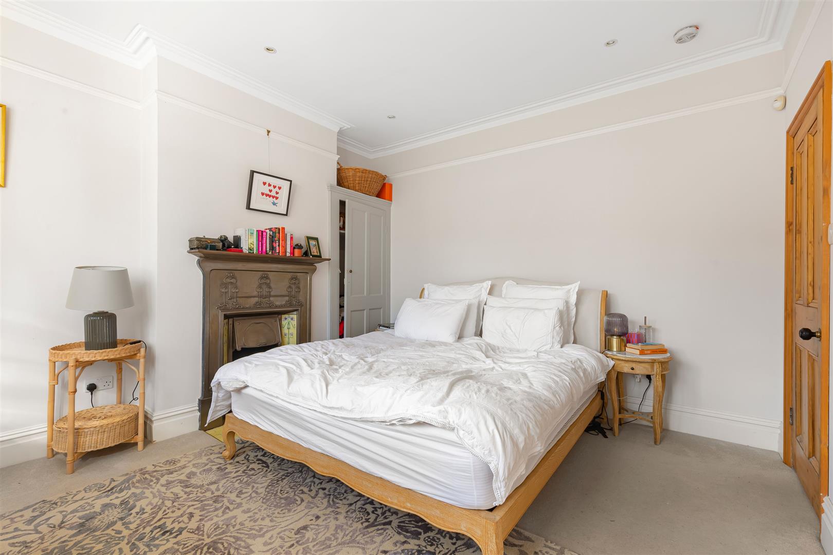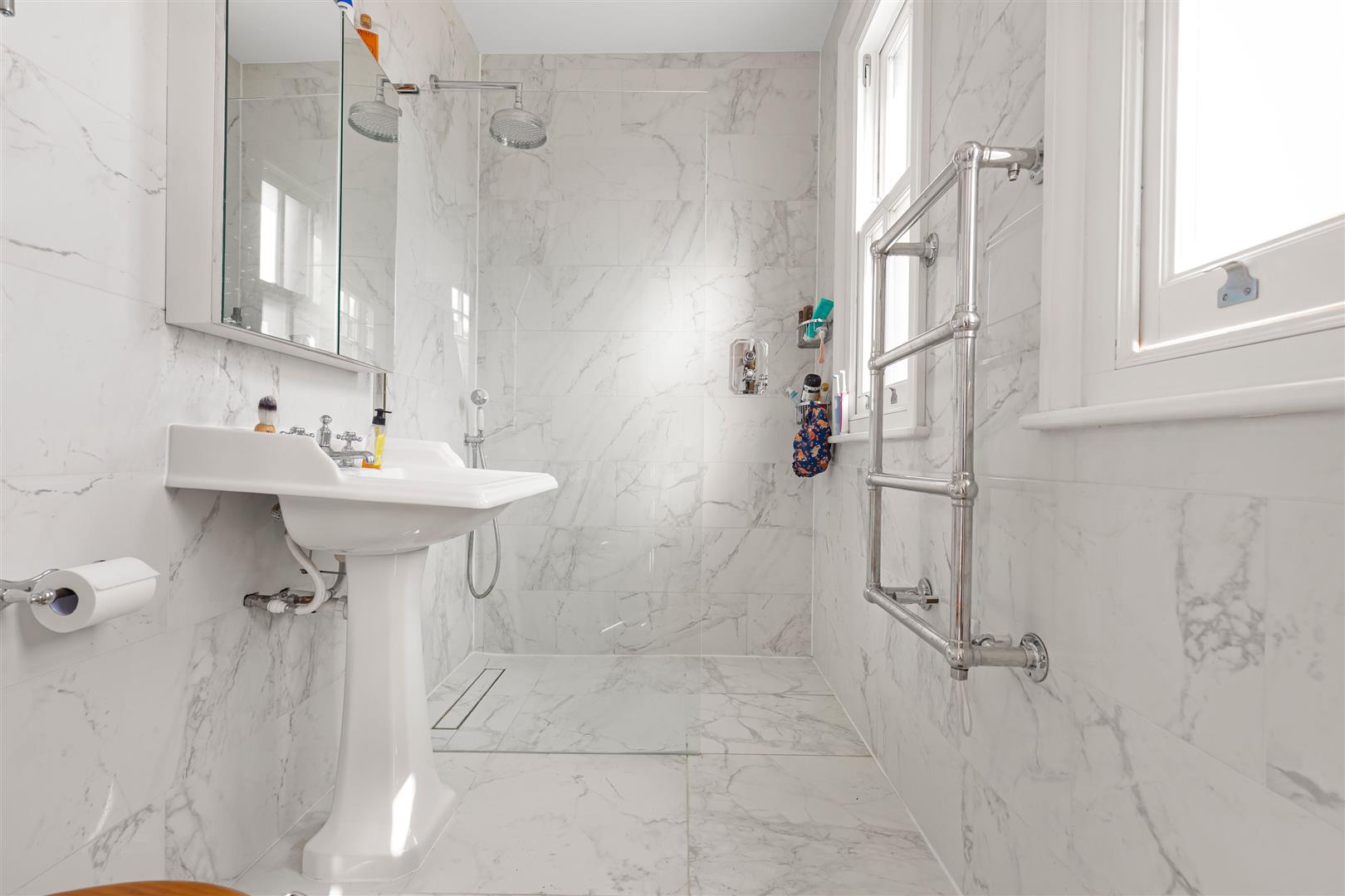 The spacious entrance hallway leads through to a bright double reception room with high ceilings, period detailing and fireplaces. Full height double doors lead on to an expansive open-plan bespoke kitchen and dining room with bi-fold doors to landscaped garden. There is a separate utility room with butler sink and guest WC. Over the top two floors are four double bedrooms, two of which benefit from excellent built-in wardrobes and modern en suite bathrooms. The master comprises a walk-in wardrobe and wet room, whilst the other suite benefits from a luxurious en suite bathroom with original roll top bath and walk-in shower. There is a further family bathroom and additional storage room.