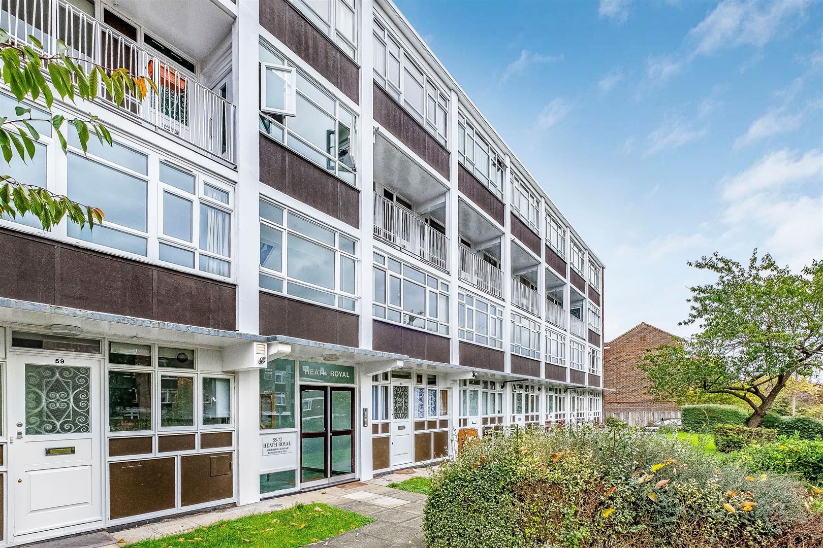 A very well presented, three double bedroom, split level flat over the ground and first floors in the desirable Heath Royal on Kersfield Road. The ground floor offers a very spacious reception room with a modern open plan kitchen. Upstairs comprises three bedrooms (one with an en-suite) and a family bathroom. The property also benefits from its own garage.