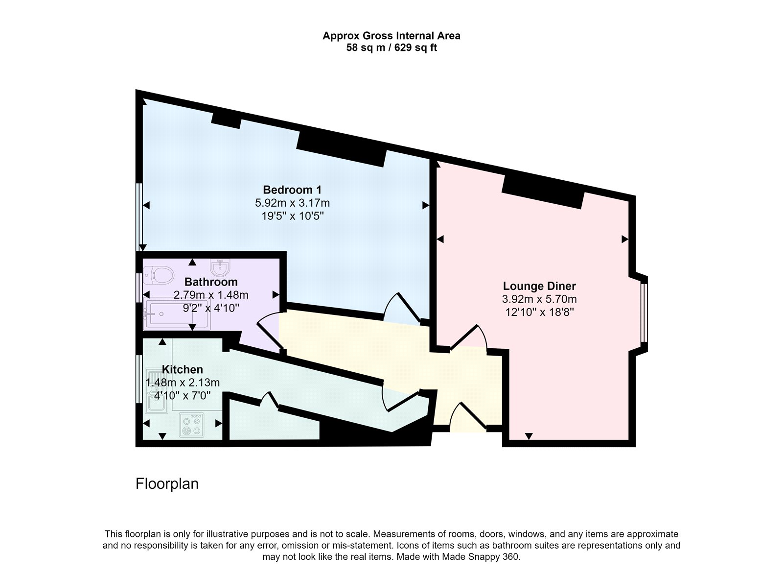 - Large one double bedroom