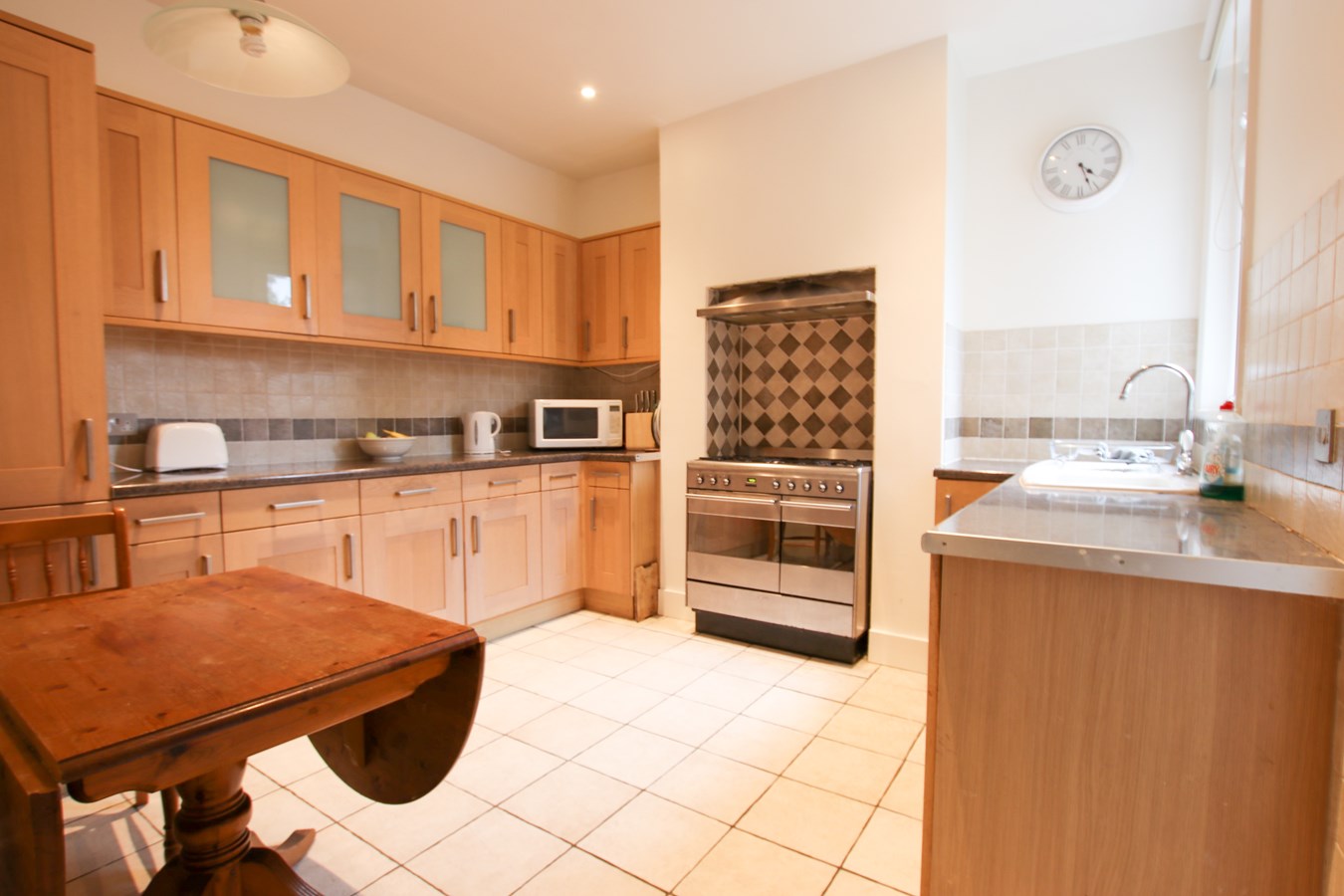 11' 2" x 11' 1" (3.40m x 3.38m) Modern fully fitted kitchen with matching wall and base units with work surfaces over, stainless steel single drainer single bowl sink unit with mixer tap, gas range cooker with air filter hood over, dishwasher, table and chairs, archway to utility room, rear aspect double glazed window.