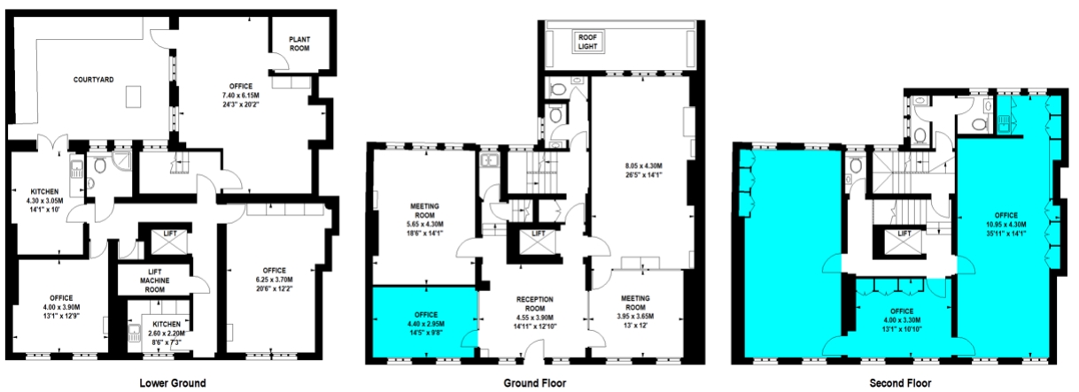 The fully refurbished air conditioned second floor has its own kitchen as well as access to a shared reception desk with concierge, an attractive communal meeting room, wi-fi, two further fitted shared kitchens, shower facilities, bike storage, communal landscaped courtyard and demised WCs.