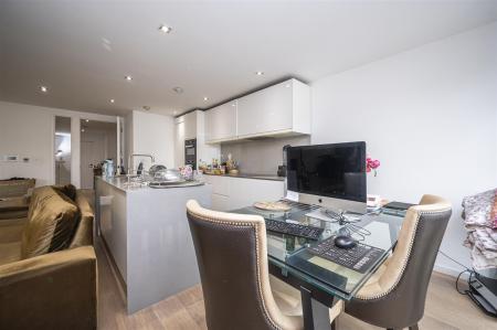 This fantastic modern new build apartment offers an abundance of space and natural light. Entering from the hallway you can find the two double bedrooms, the principle bedroom offering plenty of storage via the walk in wardrobe which leads into a large modern fitted bathroom and the second double bedroom which also offers fitted wardrobes. The front of the property opens into a large bright open plan kitchen with integrated high-end appliances. The apartment is also arranged to offer an airy living and dining space which leads onto a balcony overlooking a pretty courtyard garden. The property further benefits from secure parking, onsite gym, secure bike storage and 24hr concierge.