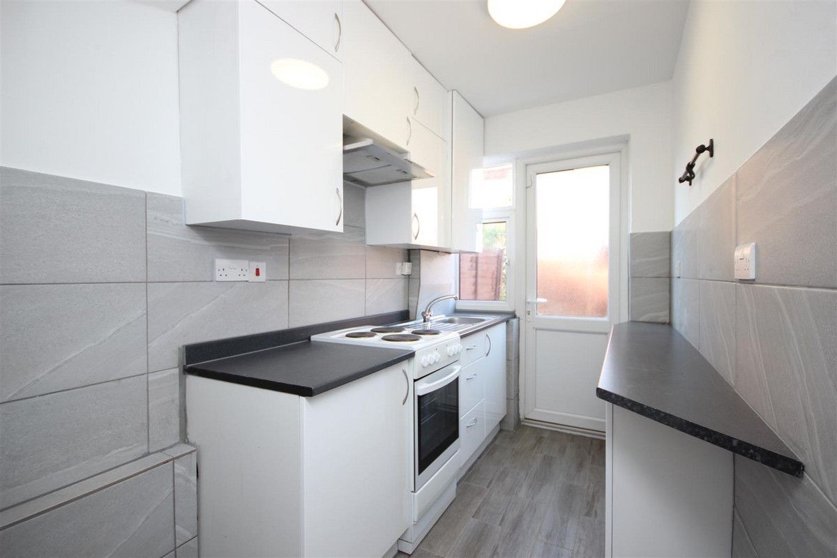 Fitted kitchen with door to rear garden