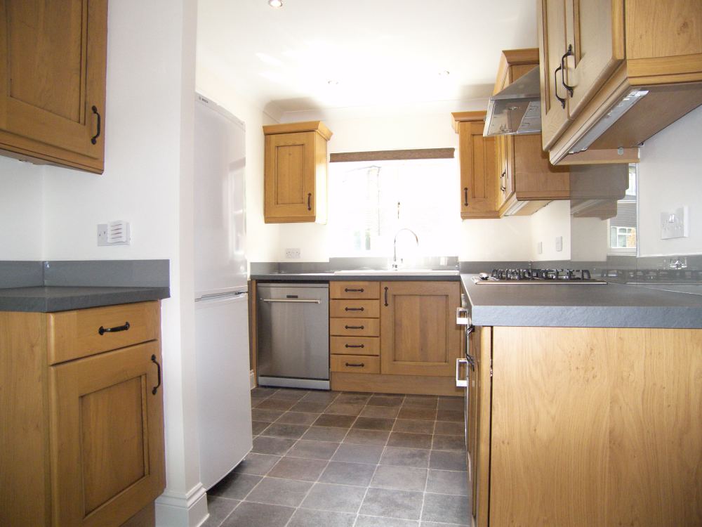 10' 9" x 7' 5" (3.28m x 2.26m) Double glazed window to front, Inset spot lights, range of co-ordinated wall and base units with work surface over, single drainer sink unit with mixer tap, integrated oven, hob, extractor hood, plumbed for dishwasher, space for fridge-freezer.
