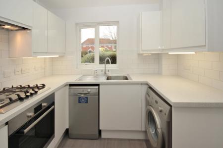 The kitchen is a recent installation featuring a range of contemporary, laminated gloss white units with integrated handles. Appliances include Bosch electric fan oven, gas hob, integrated extractor, washing machine, dishwasher and vertical fridge/freezer. All lighting throughout the interior of the property utilises energy efficient LED fitments.