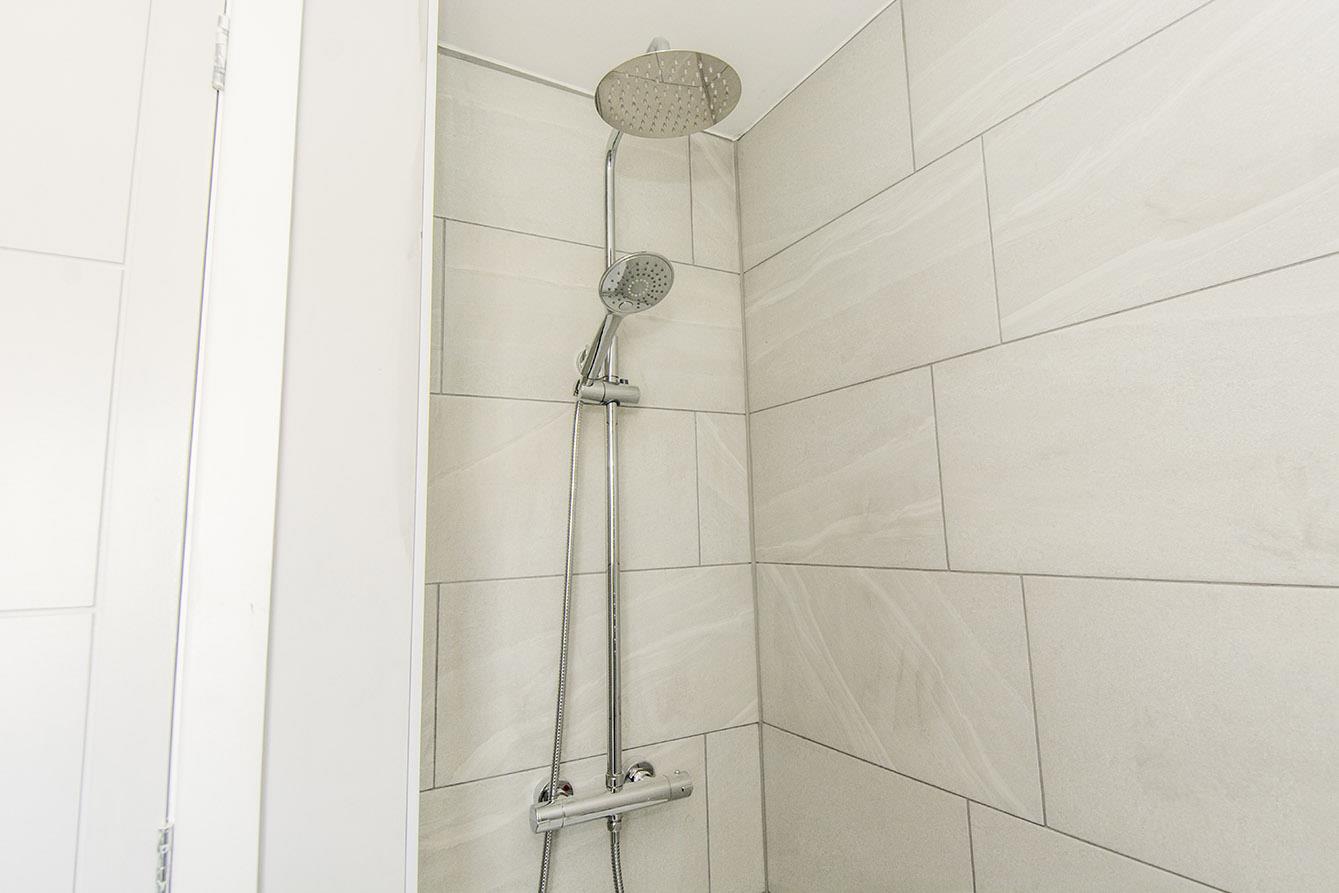 Bathroom - 2.69m x 1.65m (8'10 x 5'5) - Fitted with a brand new suite comprising of a low flush WC, wash hand basin set onto a vanity cupboard, bath with shower and side screen with full height ceramic wall tiling, chrome heated towel rail, spotlights to the ceiling, extractor fan and luxury vinyl flooring.