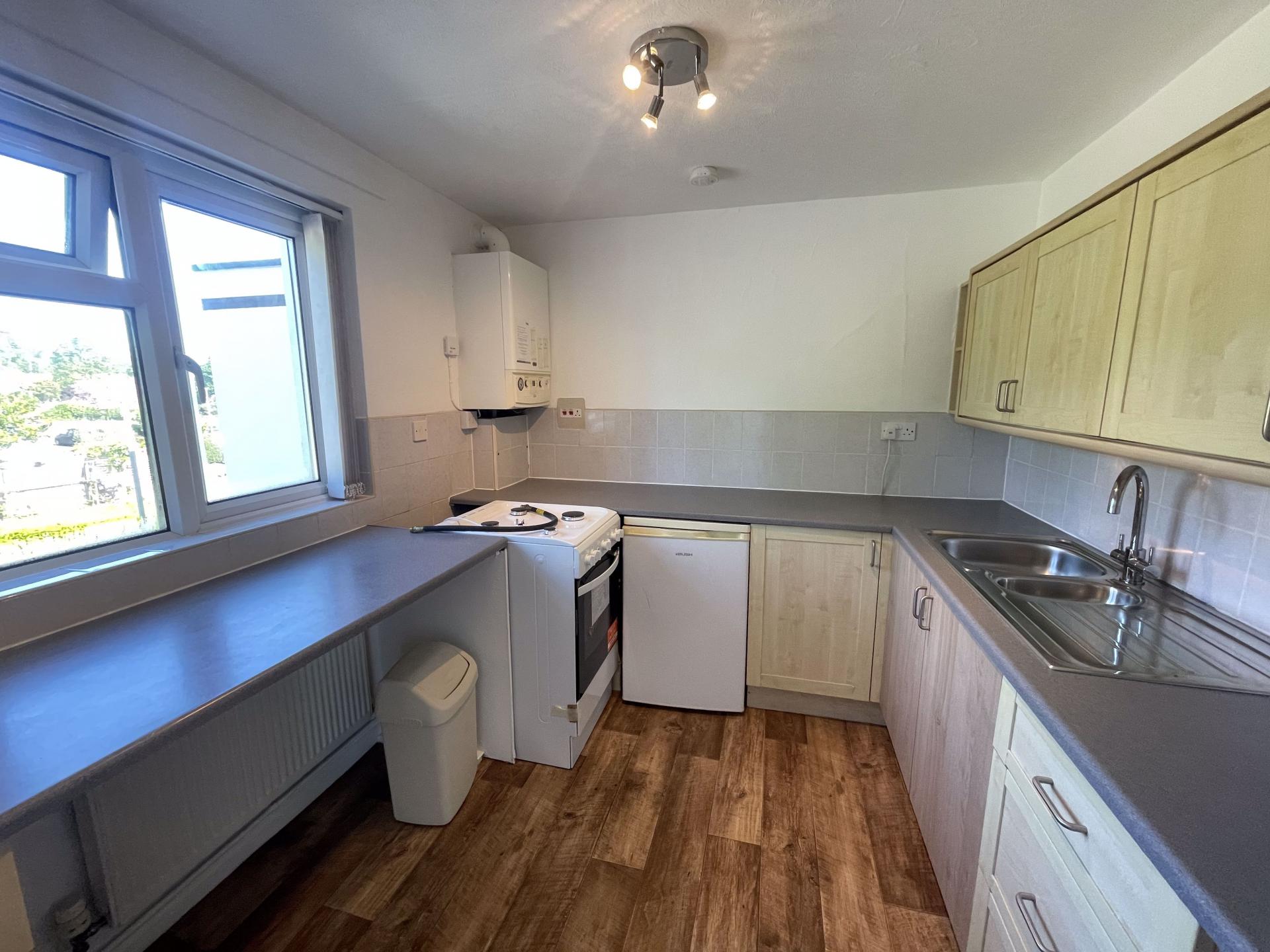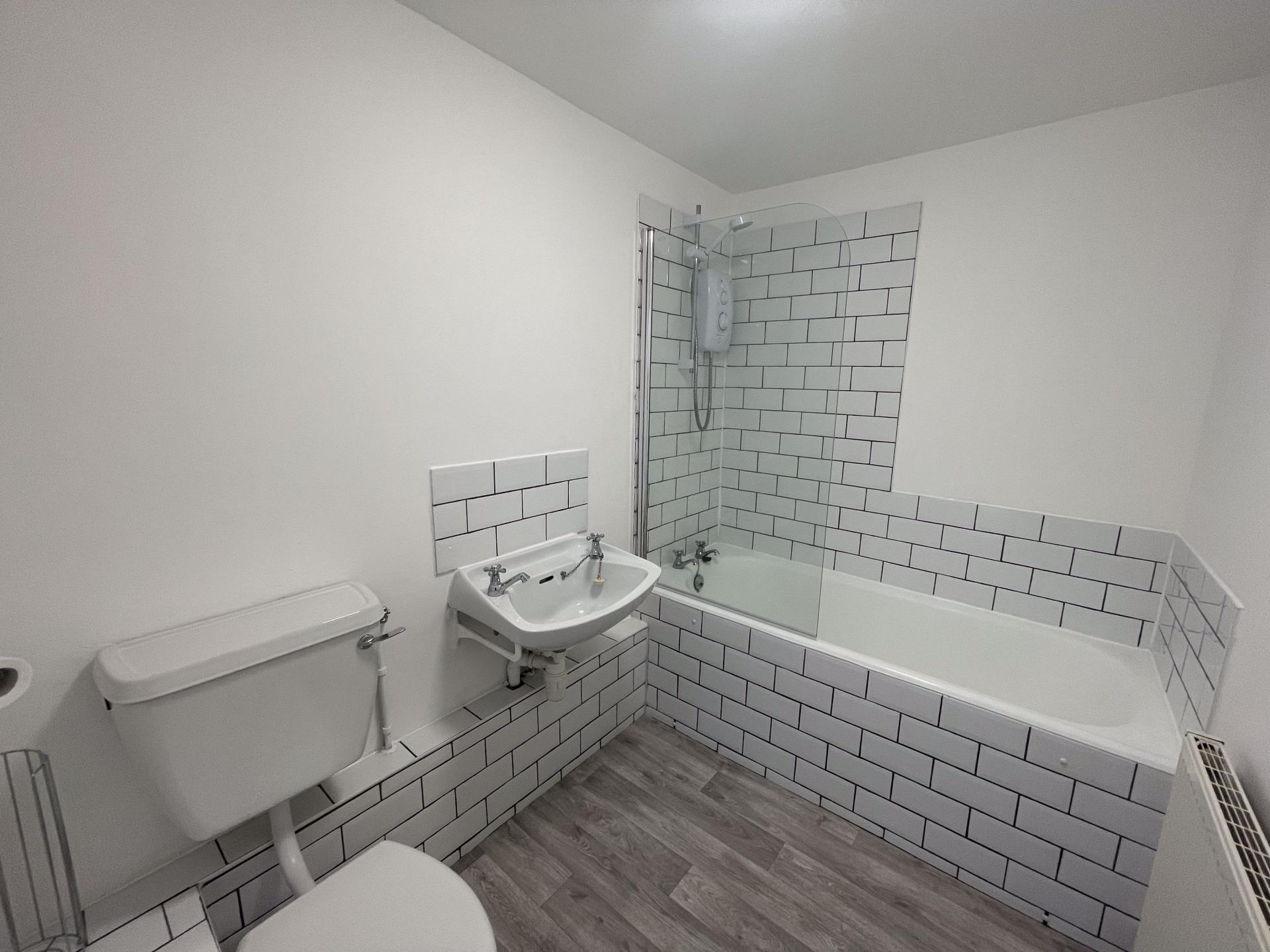 Newly decorated and unfurnished, this 2-bedroom purpose-built first floor flat is within easy reach of the town centre. Includes a living room leading to a fitted kitchen, bathroom with shower over bath, and gas central heating. Parking available (not allocated). EPC Rating D.