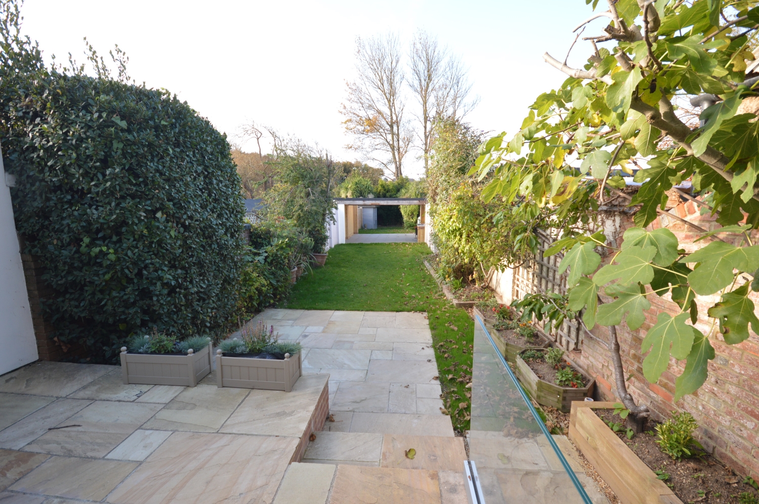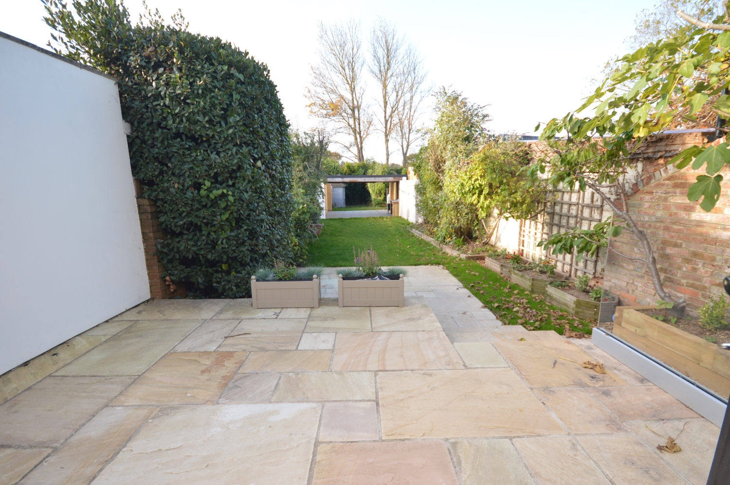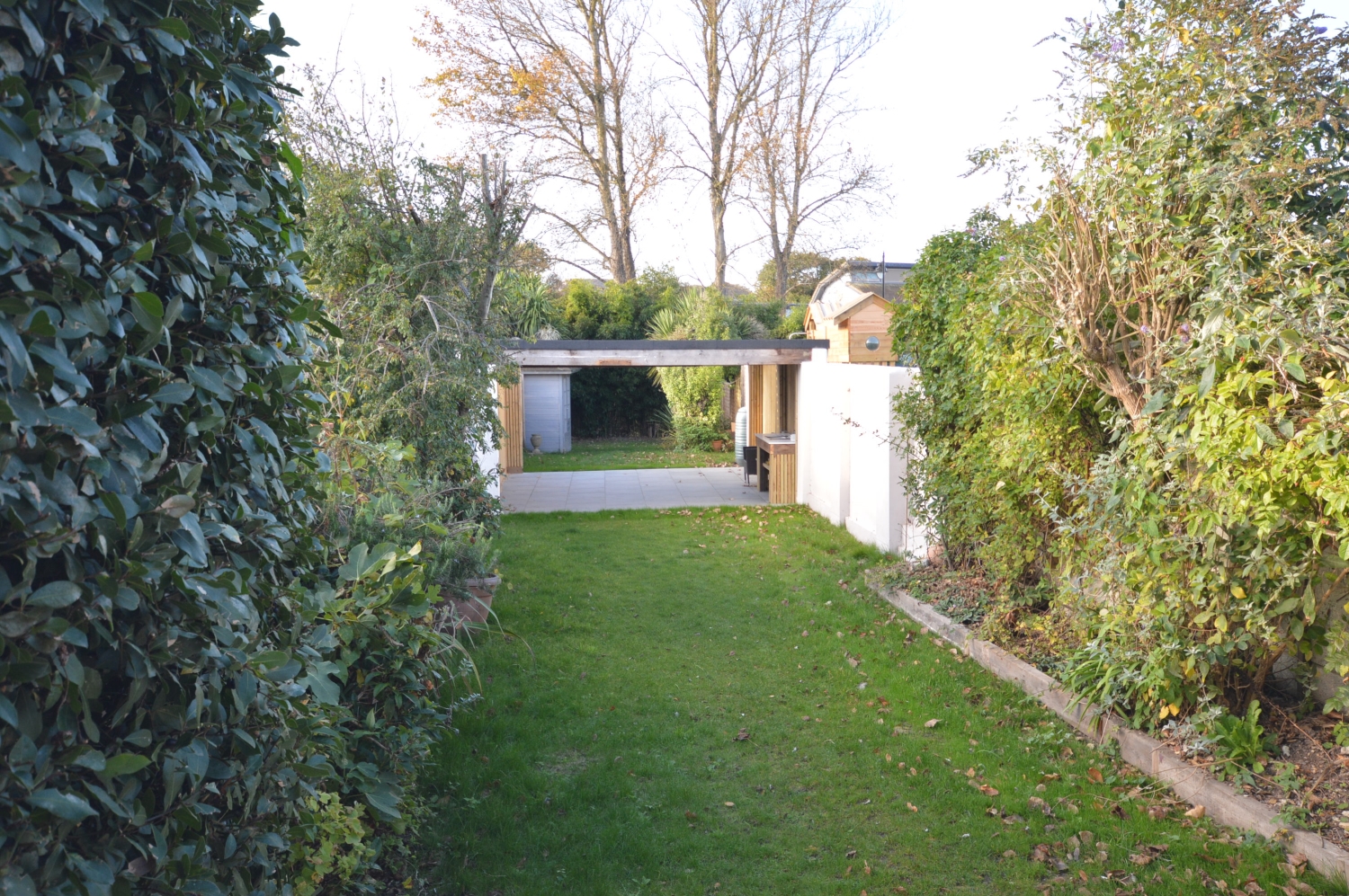 * Rear garden with garden kitchen area