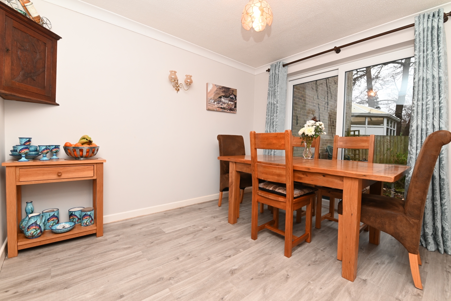 Three bedroom detached house with mature garden, garage and driveway parking. Available now on an unfurnished basis.