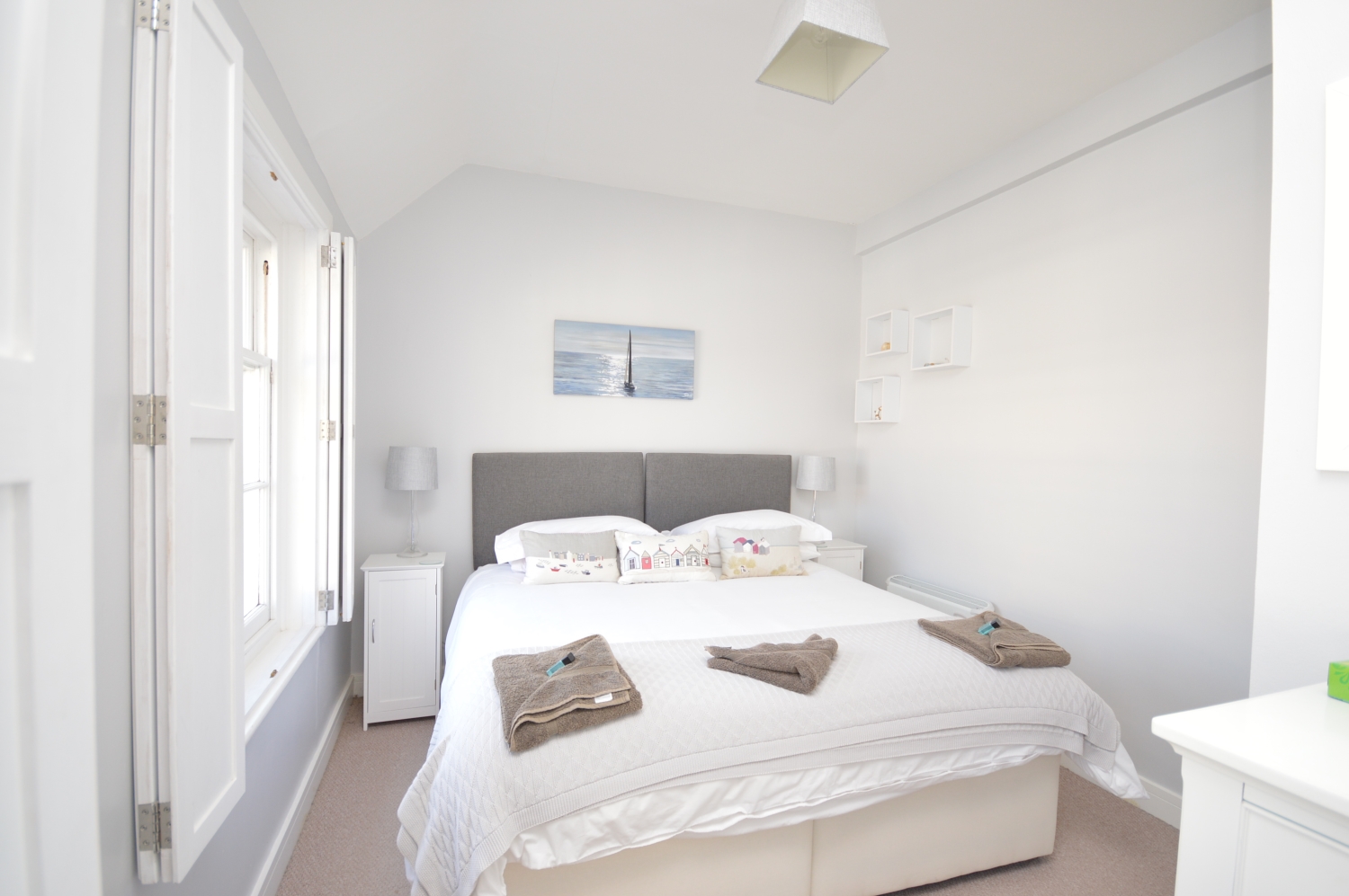 * Master bedroom with dressing area and shutters on windows