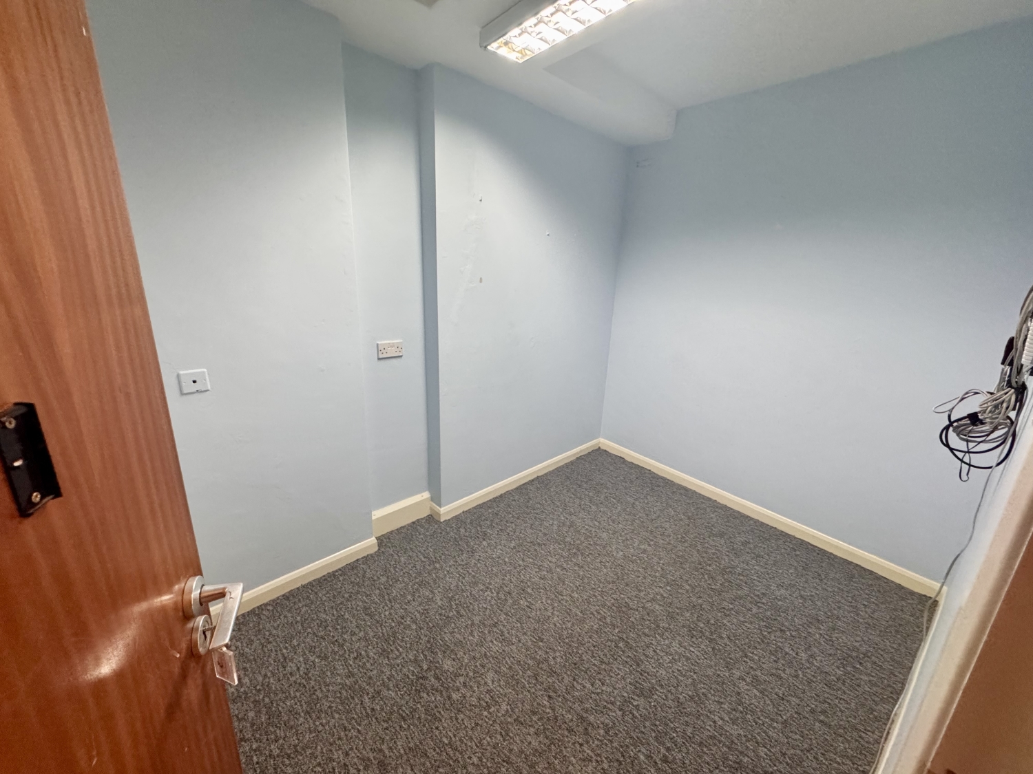 A first floor office in Palamos House which is a purpose built office building. The office being ‘L' shaped with maximum measurement of 15' x 21'6 which extends to approximately 230 sq ft. Adjacent is a separate store of approximately 65 sq ft available for £100 per month.