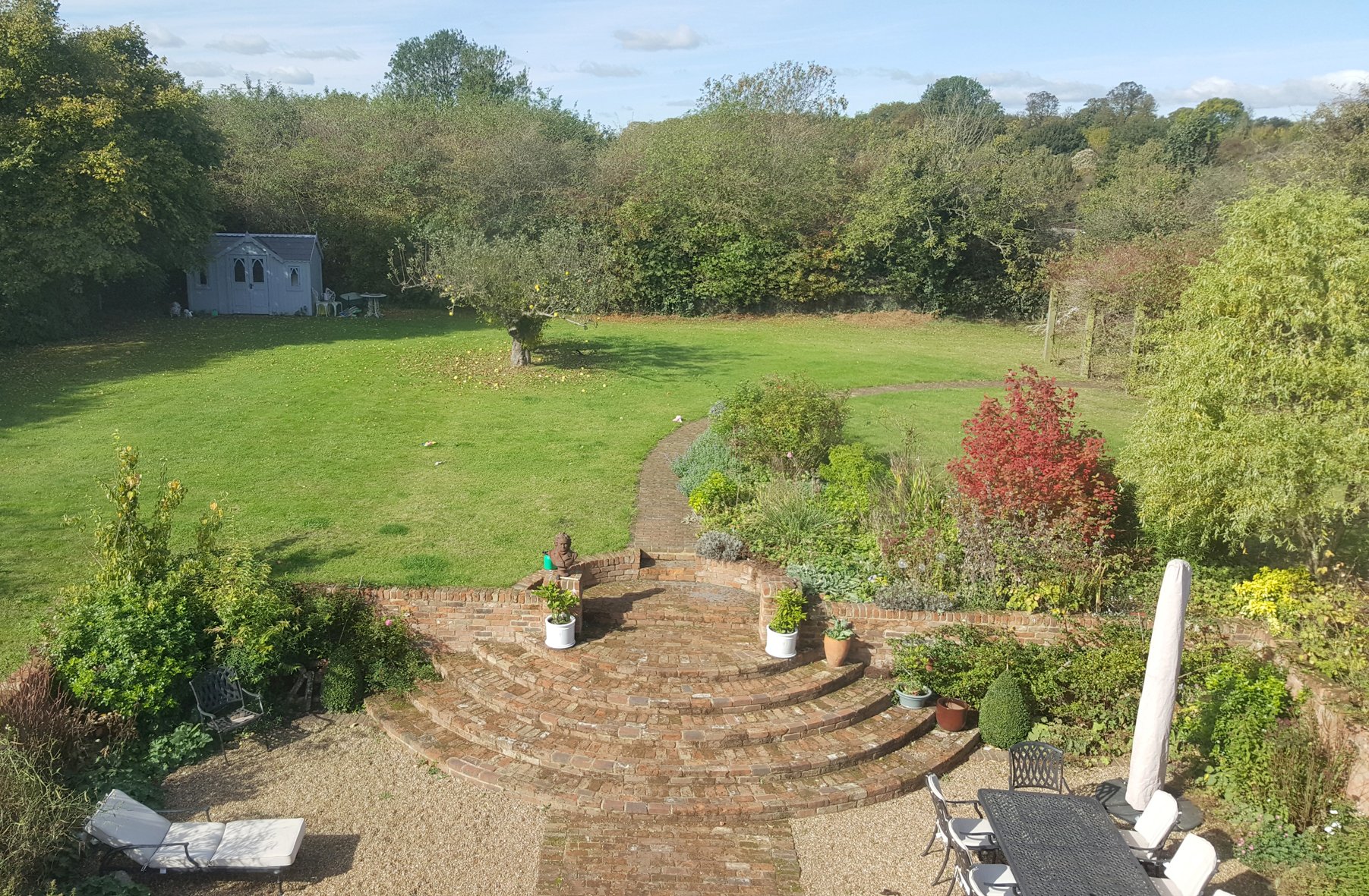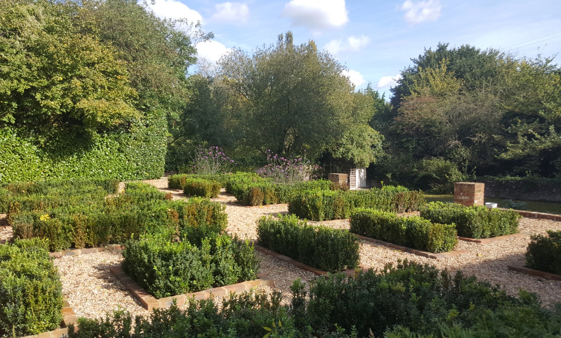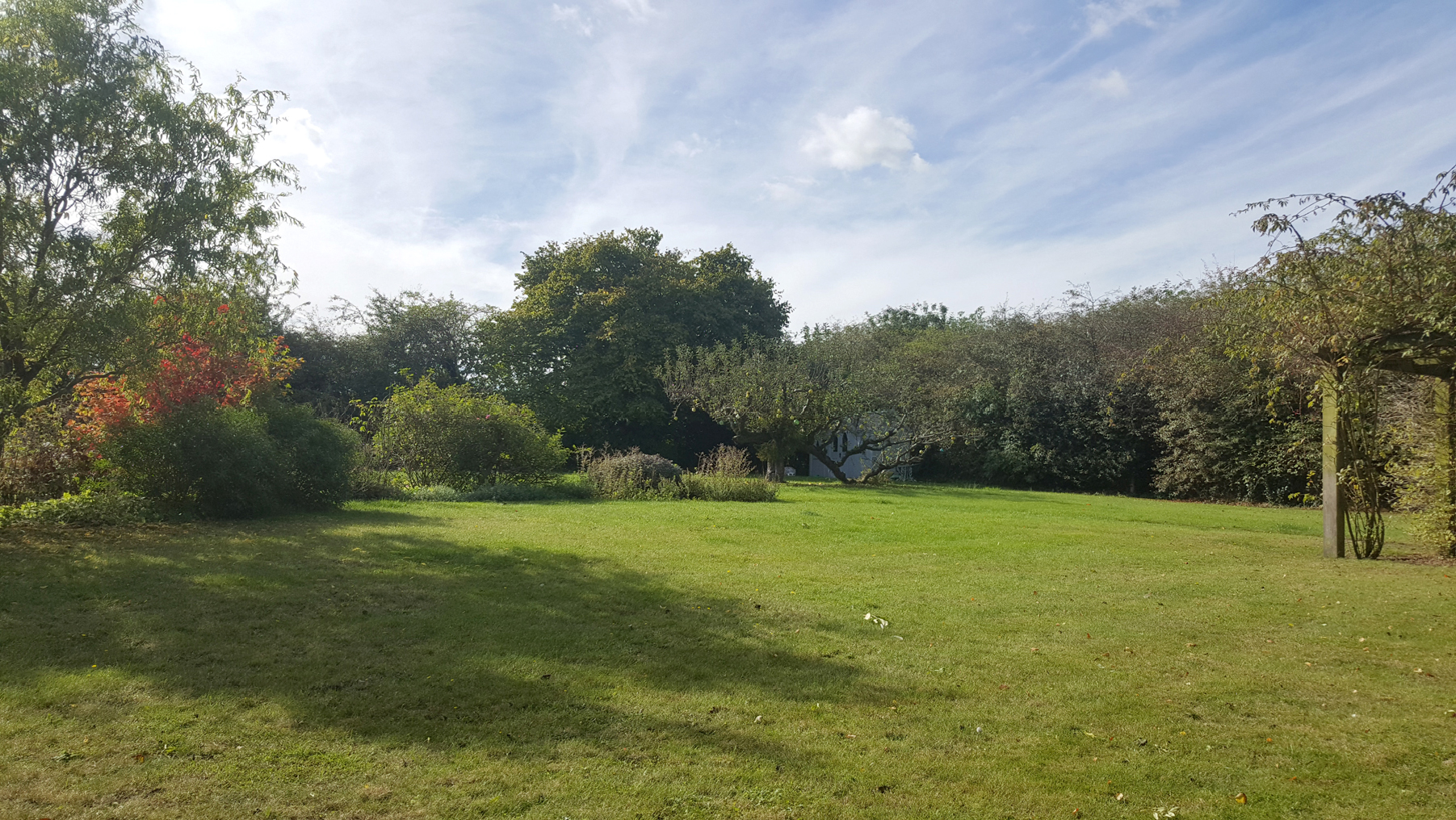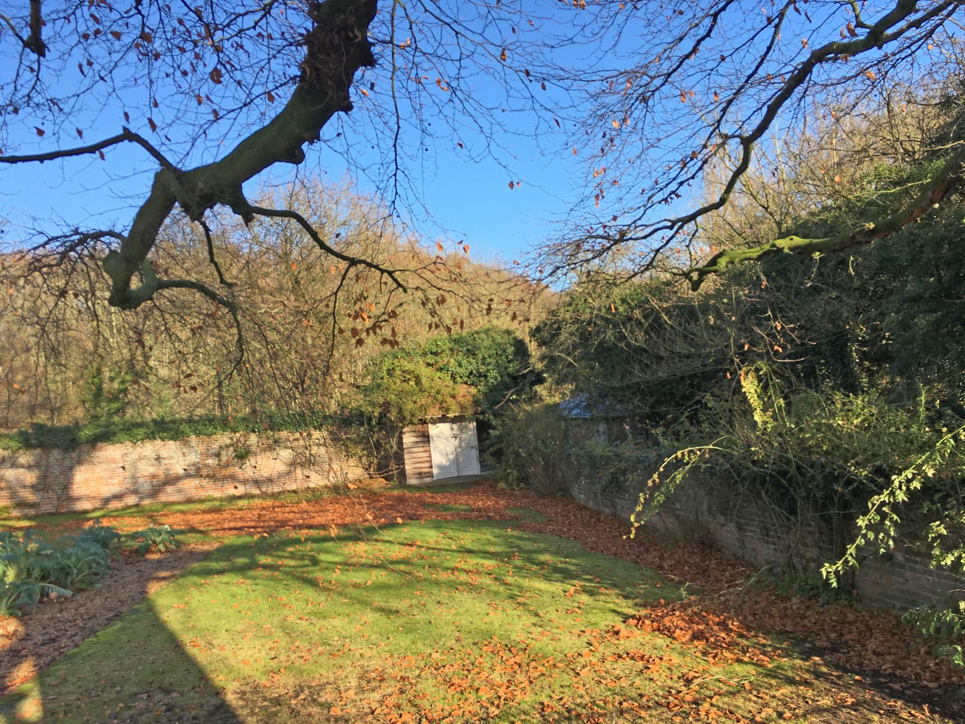 The paddock is accessed by a five-bar gate from the lane and by a secondary gate from behind the garage. The paddock is fully enclosed by mixed hedging and has been planted with mulberry, crab apple and horse chestnuts.