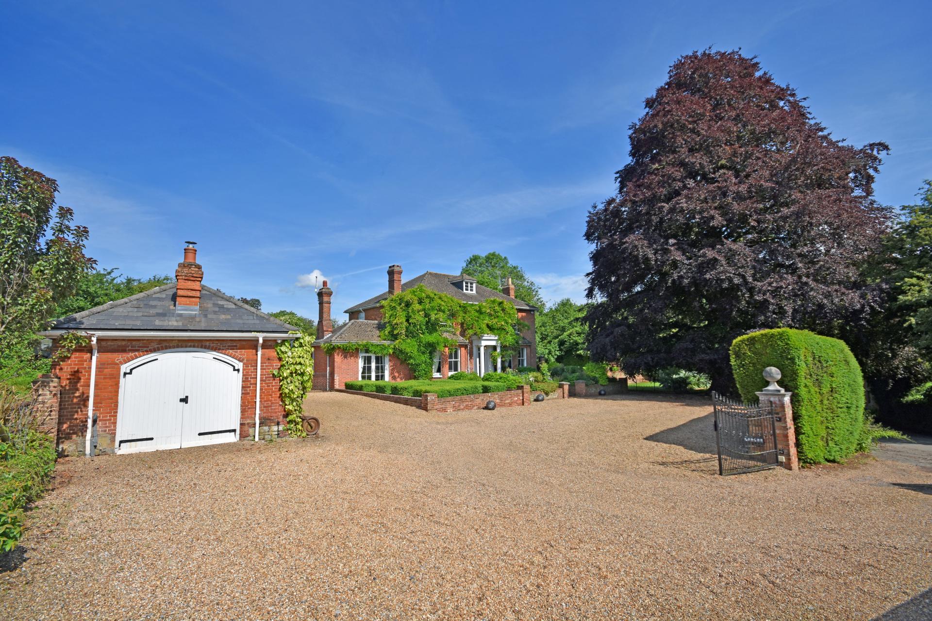 Description: Coombe Bank House is a handsome unlisted late Georgian country house which dates to the early 19th century with later additions in the early 20th century. Of brick construction the house features attractive sash windows and a Doric columned portico front entrance, all beneath a hipped and pitched tiled roof. The old Coach House within the grounds has been lovingly converted and serves as annexe accommodation, ideal for guests, staff or family.
