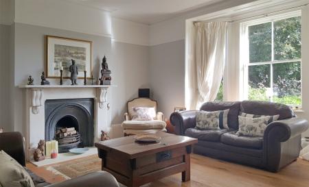 Drawing room: 17' 7 x 15' 9 (5.38m x 4.81m) max. Ceiling height: 9' 0 (2.74m). A stunning room with period features. Sash bay windows with shutters overlooking the gardens to the front of the property. A focal point of the room is an arched period cast iron fireplace with attractive pale marble surround, hearth and matching mantle over. Classic polished oak floor boarding, picture rail, ornate cornicing, bespoke cast iron radiators and TV points.