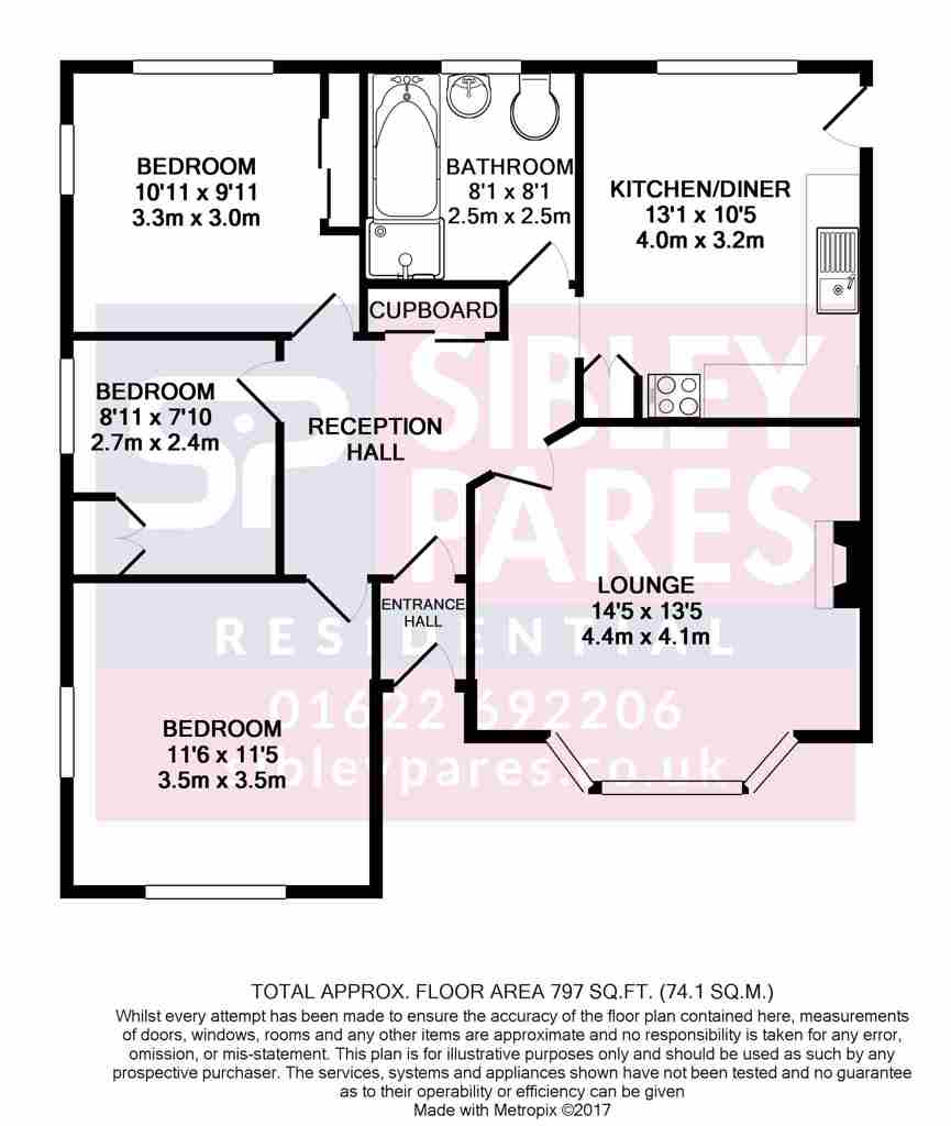 The lounge has a bay window allowing for some extra space and fire place with wood burner style electric fire. The kitchen/diner includes storage units and an electric cooker but has room for a dining area. The bathroom is well designed to allow for a separate shower cubicle and a bath. There is a good size front and rear garden with a covered patio area and lobby area connecting the bungalow to the single garage. Plenty of off road parking to the front of the property is also provided as the property is set back from the road.