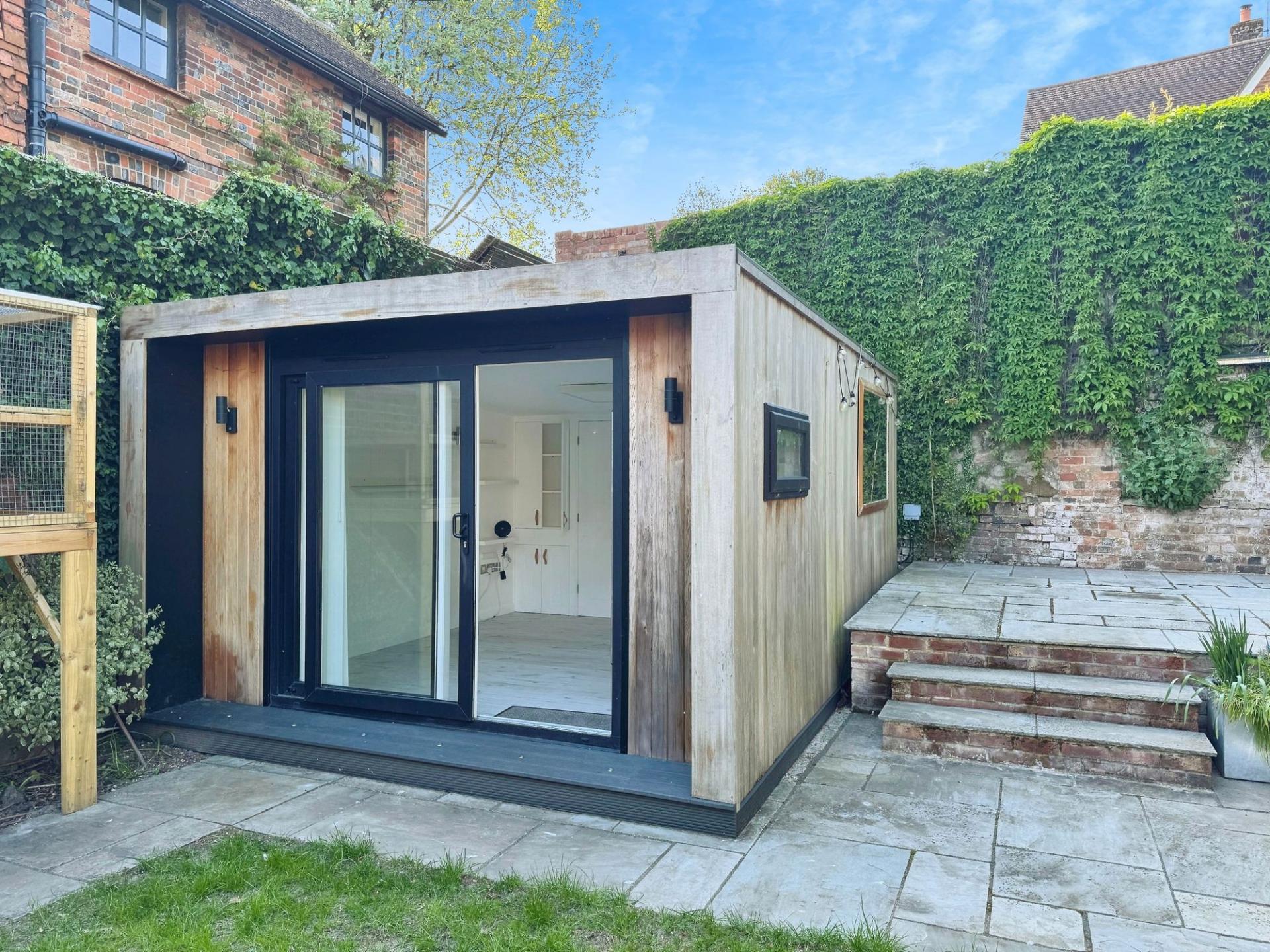 Outside, the west-facing walled garden is a private sanctuary, beautifully landscaped with mature shrubs, a lawned area, and a raised patio — perfect for summer dining and relaxation. Beyond, a luxury garden room provides a fully insulated, self-contained space, complete with a kitchenette and stylish shower room — ideal as a home office, guest accommodation, or year-round retreat.