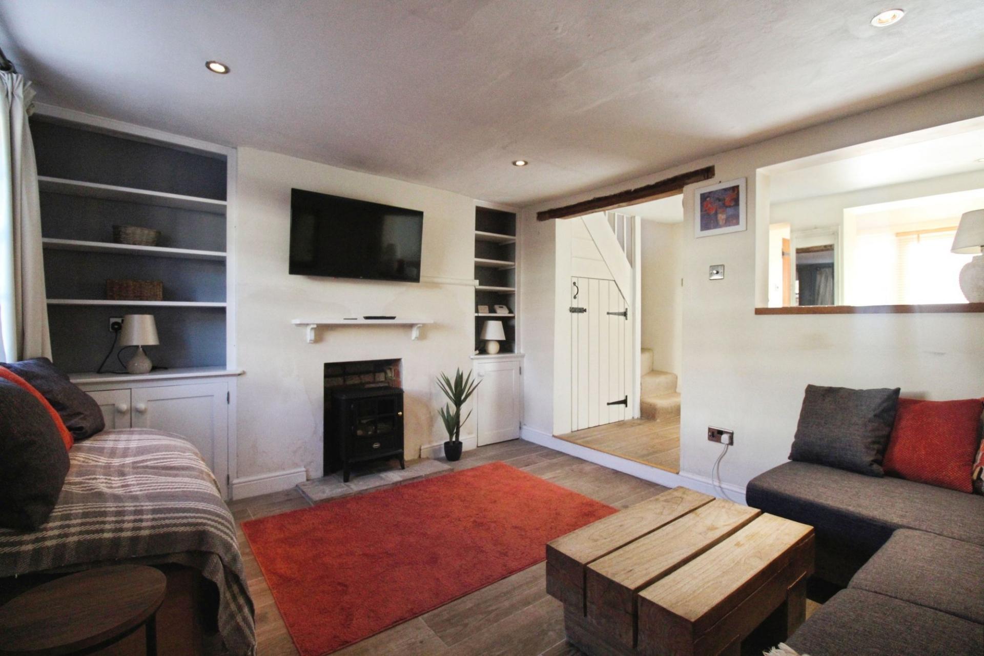 Delightful terraced cottage in West Overton with countryside views, near Marlborough. Ground floor: living room with woo...