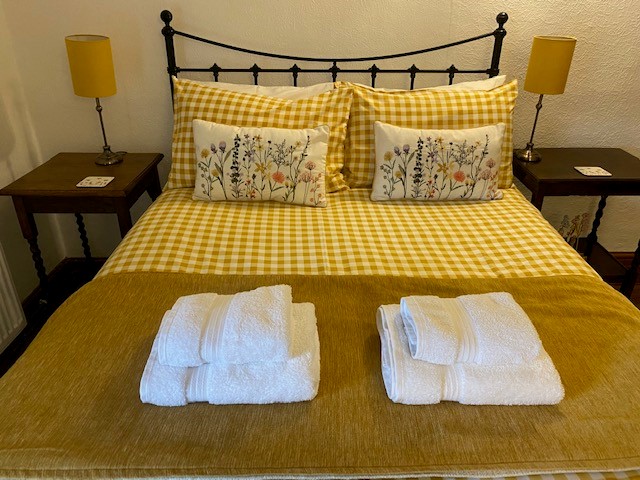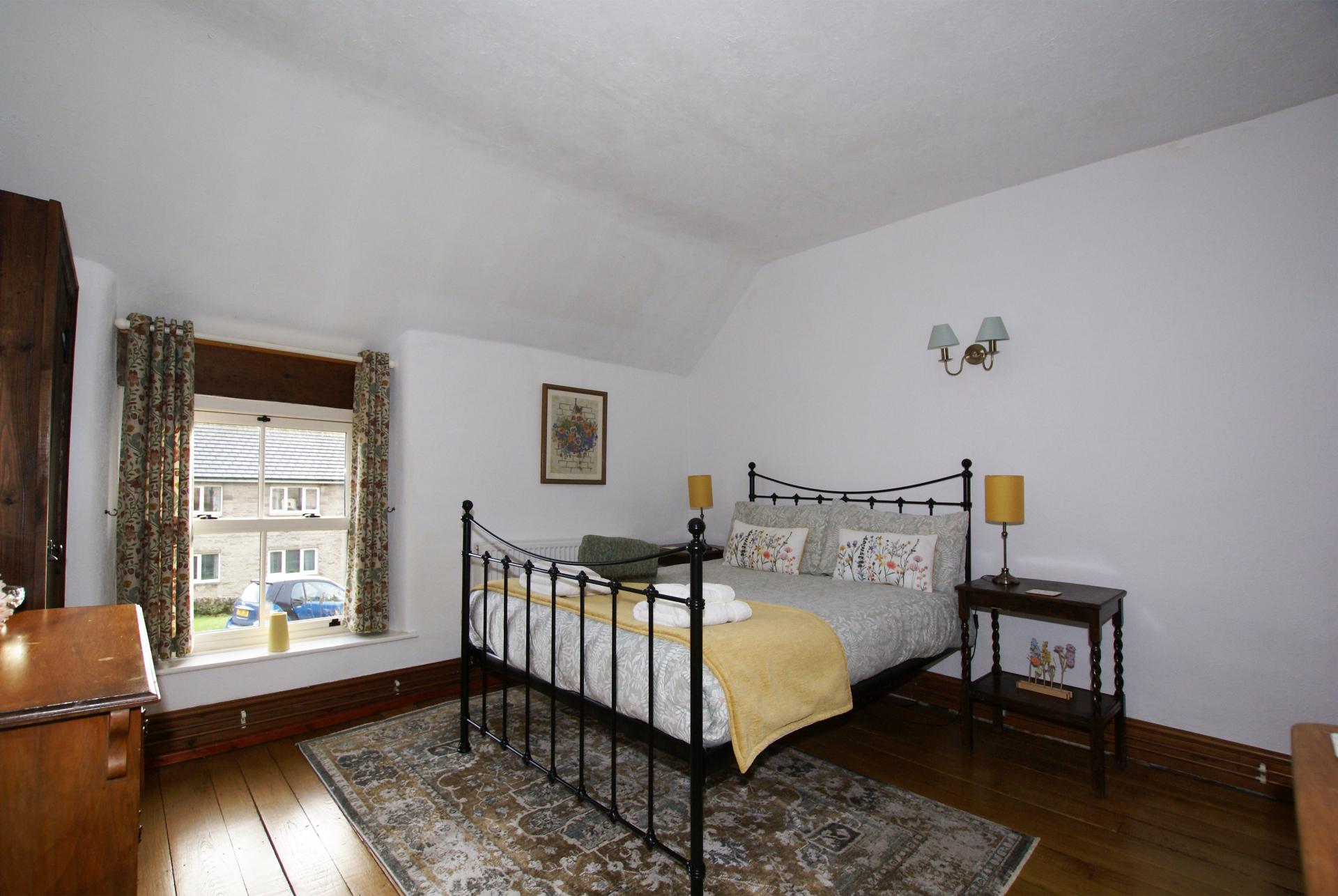 From the sitting room, a staircase rises to: