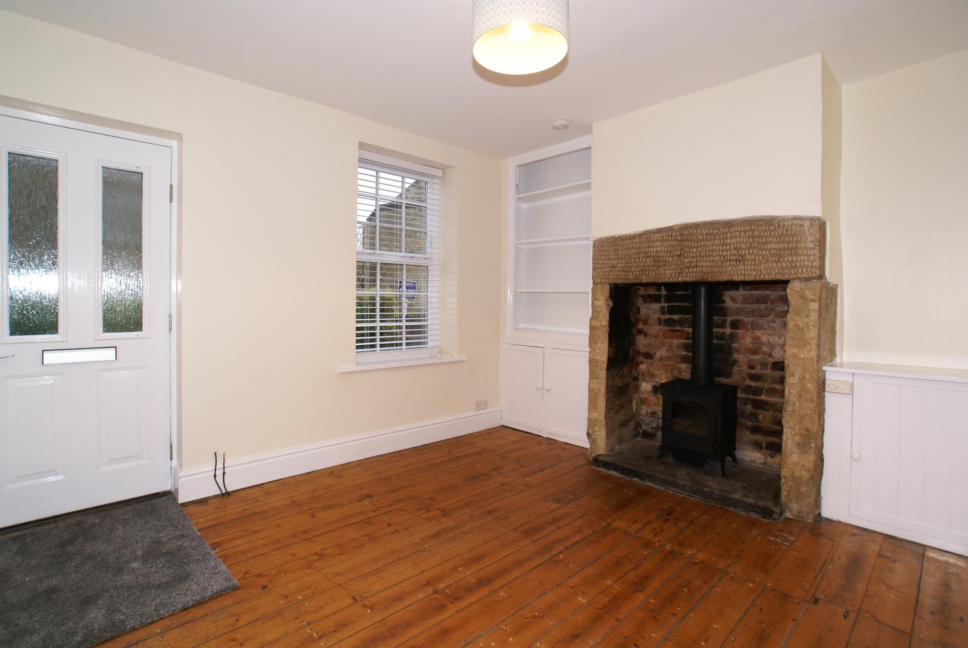 Having front aspect double glazed windows, polished exposed pine floorboards and a feature opening with a dressed stone surround and raised hearth housing a living flame gas stove. To the side of the chimneybreast are built-in open display shelves. The room has a central heating radiator and television aerial point with satellite facility. A panelled door opens to:
