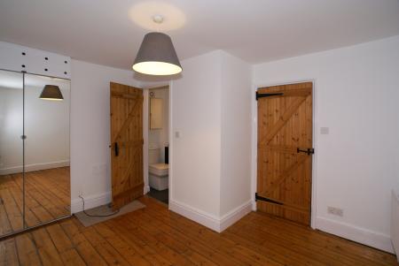 With aspect double glazed windows, polished exposed pine floorboards, built-in mirror-fronted wardrobes and a central heating radiator with thermostatic valve. A door opens to: