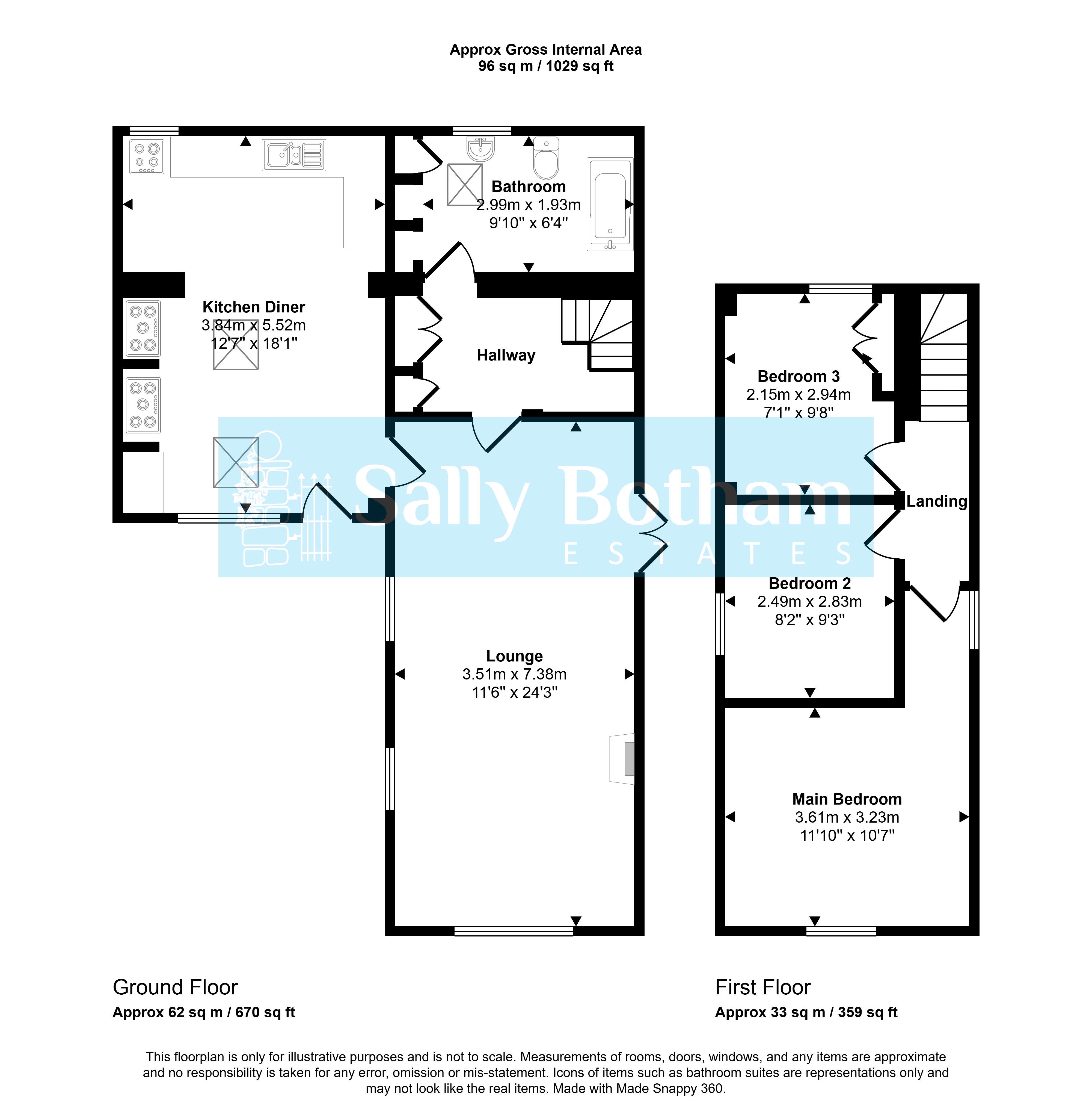The whole of the first floor is carpeted and has recessed LED lighting. The landing leads to the three bedrooms: