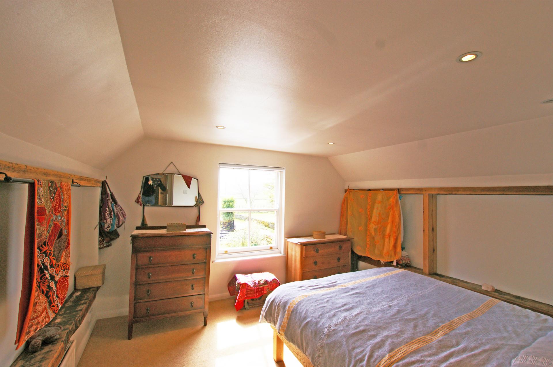 (into recess) Double Bedroom Two 10' x 8'11" Has a side aspect double-glazed casement window enjoying views of neighbouring rooftops, local farmland and countryside with a double C/H radiator with TRV, LED spotlights and a large deep storage cupboard spanning the staircase.