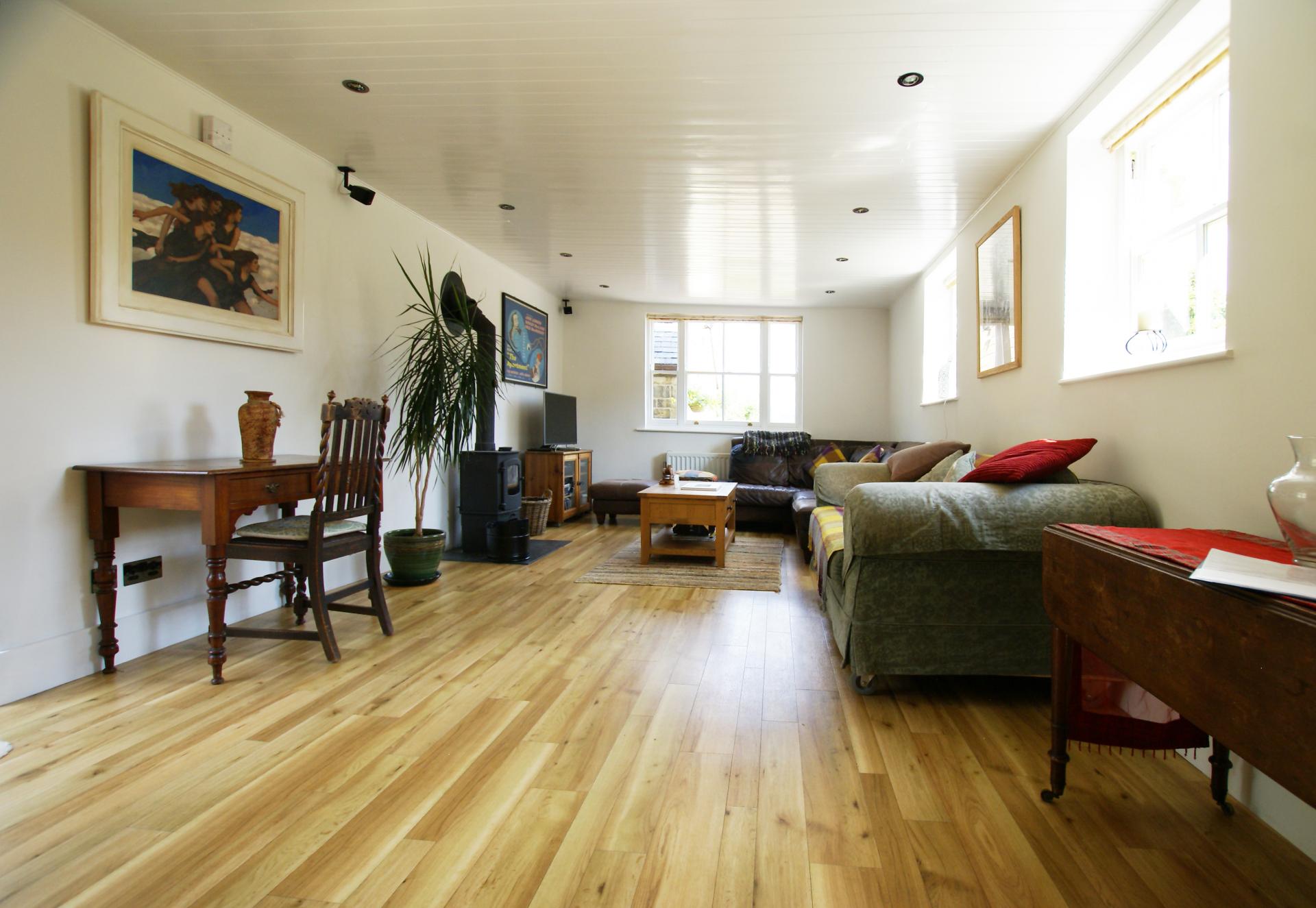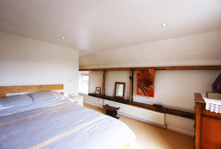 The First floor where the wooden structure of this house is revealed with oak beams recycled from ancient sailing ships running along the landing and bedrooms providing useful 10" deep ledges.