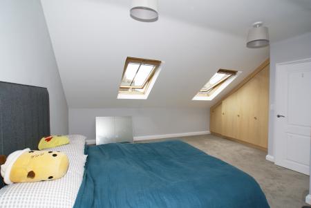 Main Bedroom Built into the shape of the roof with front aspect Velux windows. This delightfully light and spacious room has a central heating radiator with thermostatic valve, television aerial point with satellite facility and built-in wardrobes.
