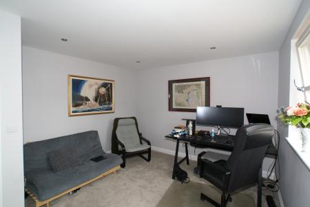 Bedroom Two Having front aspect double glazed casement windows, central heating radiator with thermostatic valve and television aerial point. The room is illuminated by down light spotlights and there is a recessed alcove suitable for cupboards or desk area.